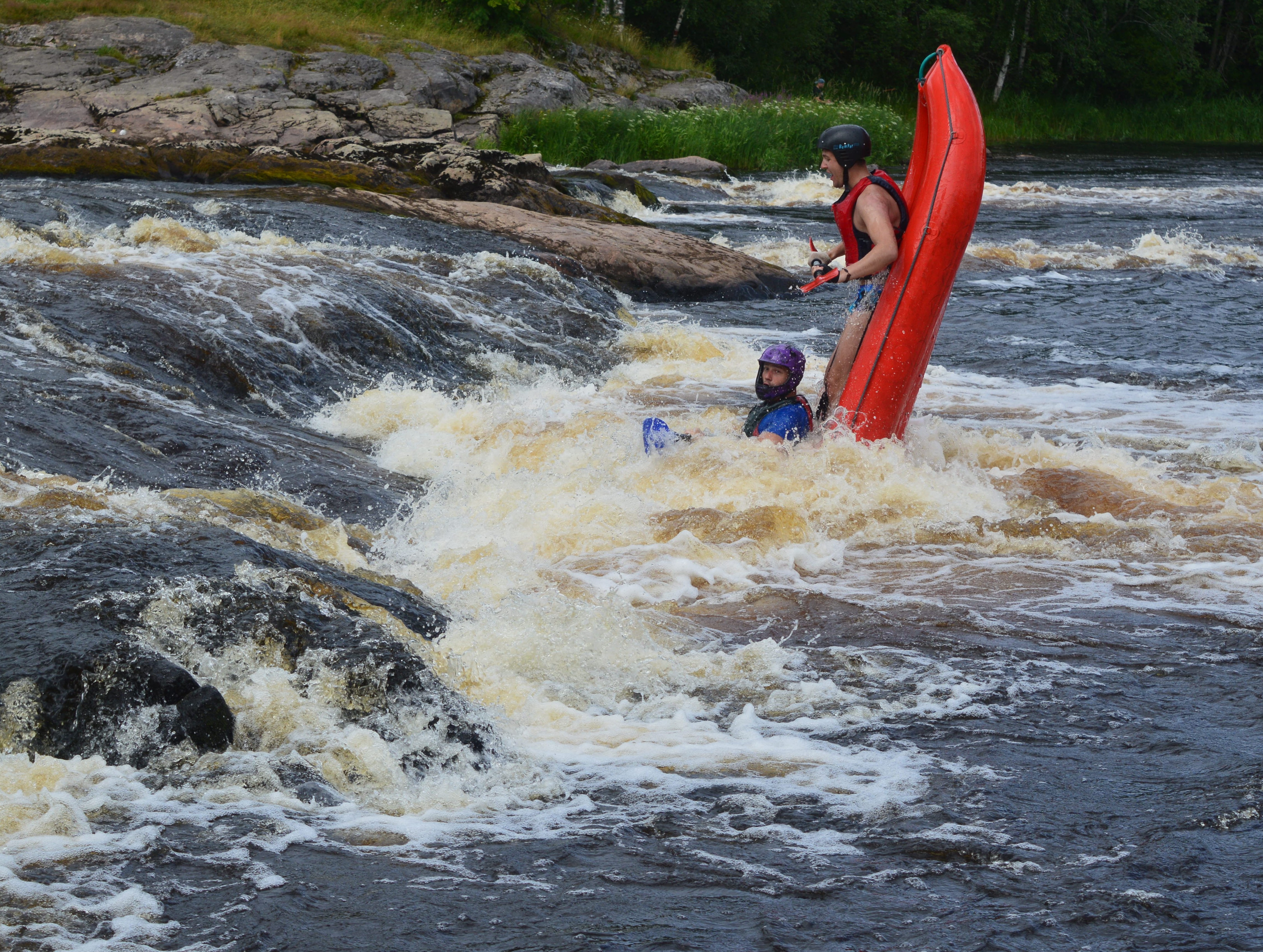 В таком положении байдарка стояла недолго, а потом перевернулась, но мне удалось "заморозить" этот момент благодаря выдержке 1/500.