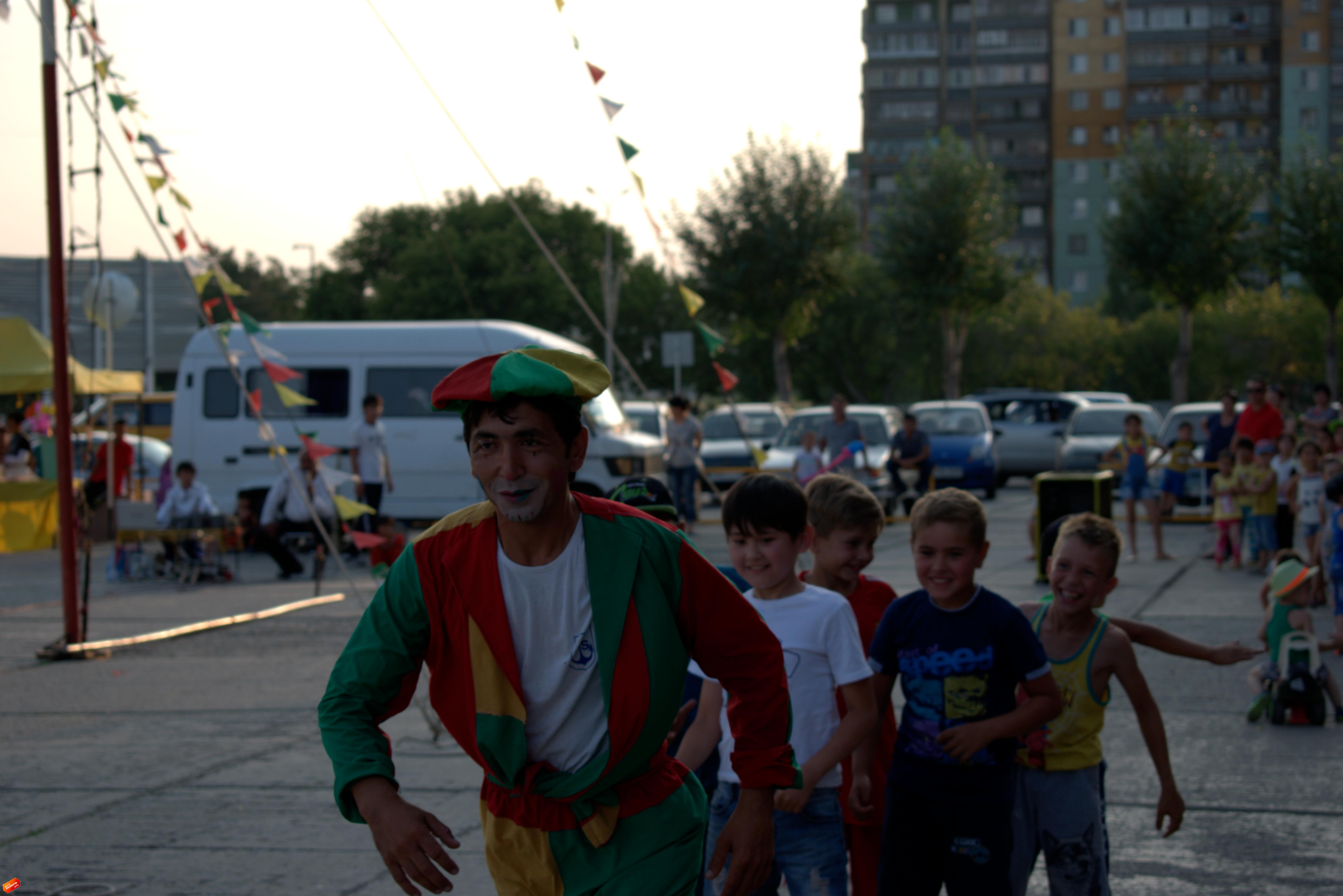 В данной фотографии хорошо выглядит цвет, особенно сочетание разноцветной насыщенной палитры одежды мужчины на переднем плане с флажками на дальнем плане. Ряд детей также придаёт снимку большее многообразие, прекрасно передана атмосфера, яркие эмоции и хорошее настроение. Но на будущее учтите ряд факторов.