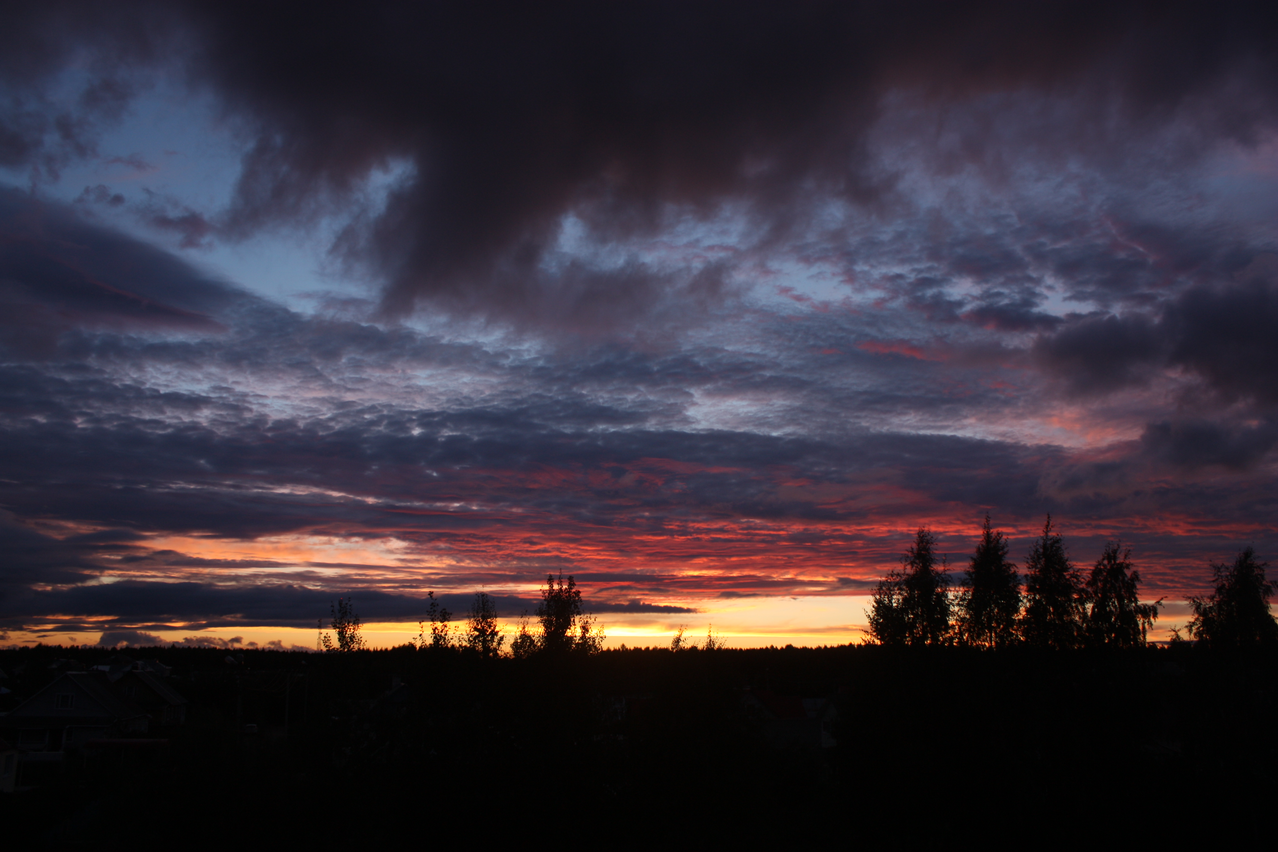 Снимала в ручном режиме (M) выдержка 1.60, диафрагма 4.5 ISO 100. Очень понравилось сегодняшнее вечернее небо. Правда красота продлилась около 2 минут, а настройки я пока выставляю довольно долго:) В целом мне понравился кадр, получился такой как и было на улице