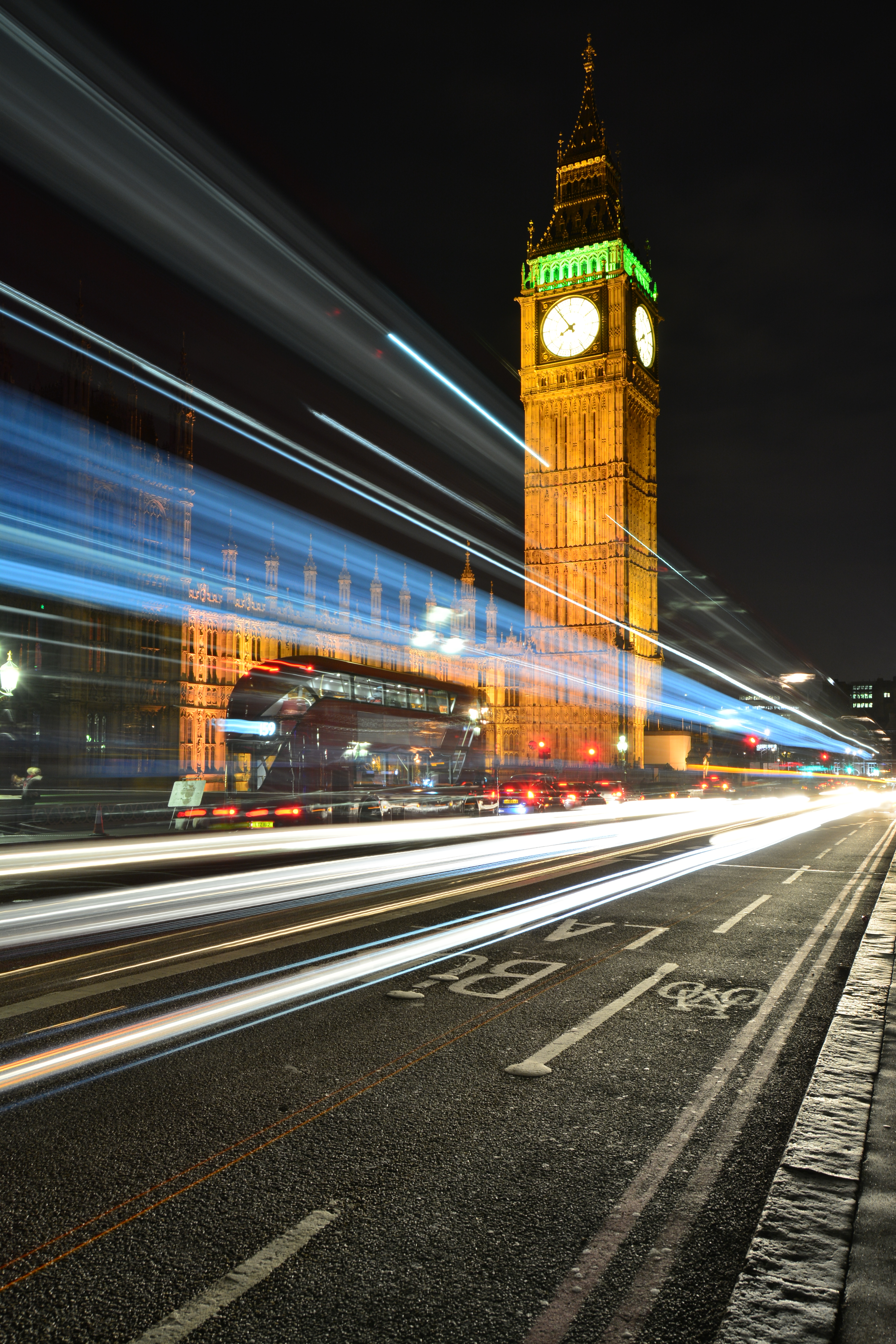 В снимке отлично передано ощущение пространства и перспективы за счёт удачного ракурса, а также точки съёмки. Длинные световые треки от автомобильных фар создают хорошие визуальные направляющие от переднего плана к дальнему, придавая снимку более динамичный вид.