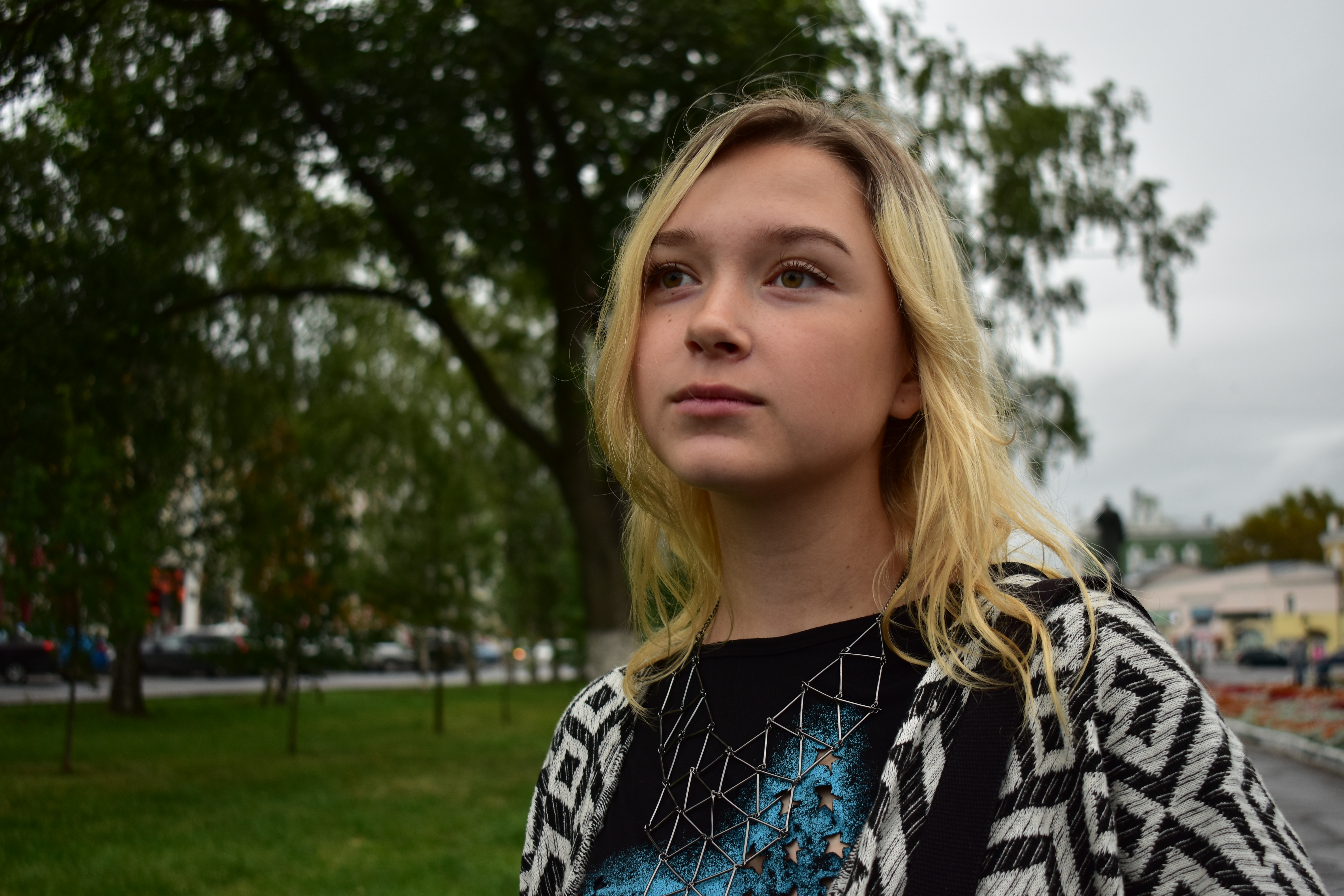 вероника, но стоило вам тут светлее снимать- вводить положительную поправку экспозиции. Фокусное расстояние для портретов стоит длиннее использовать, от 50 мм., чтобы лучшего выделения модели добиться, перспективных искажений избежать.