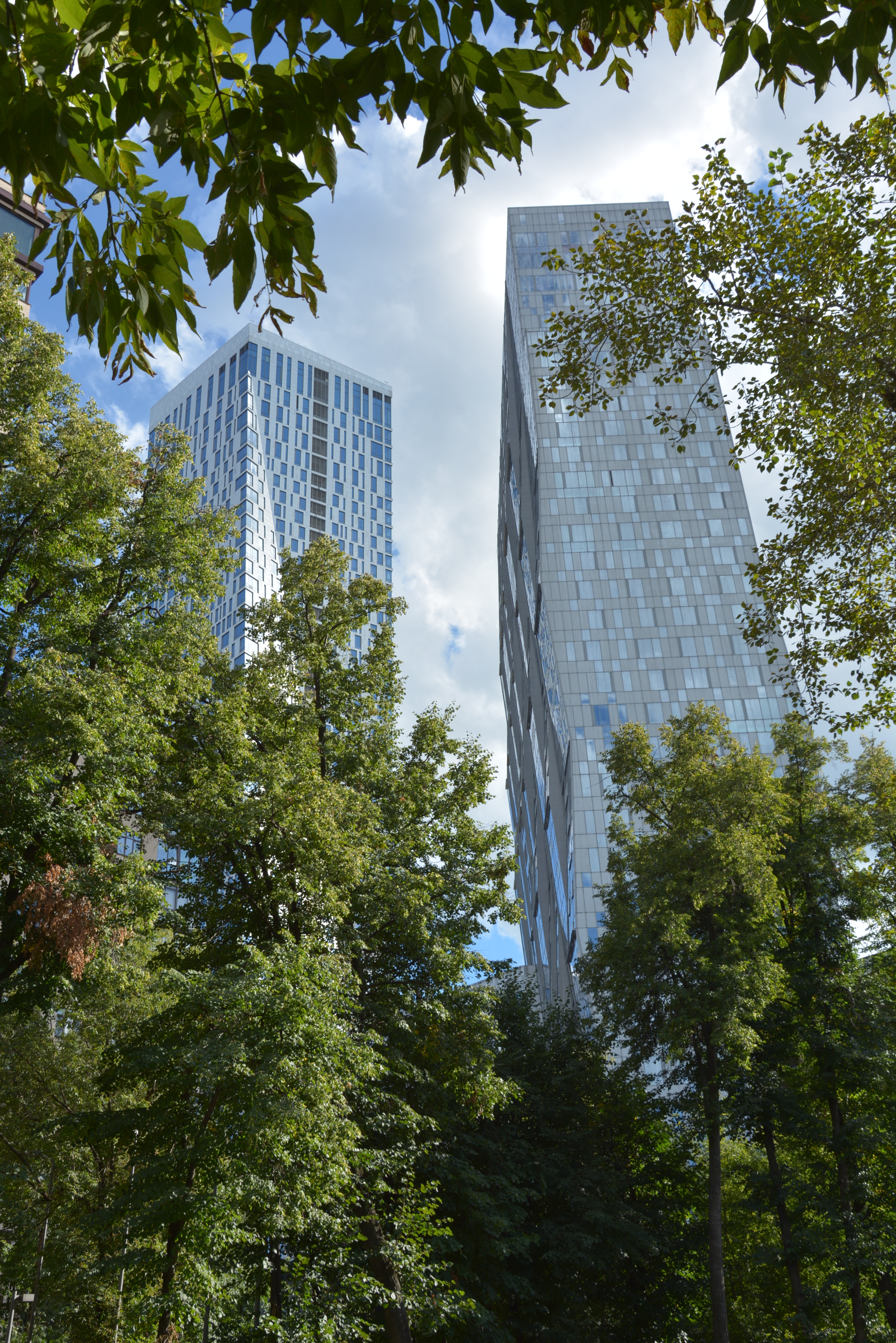 Низкая точка съёмки позволила преподнести небоскрёбы более величественными, возвышающимися к небу, смотрится здорово!