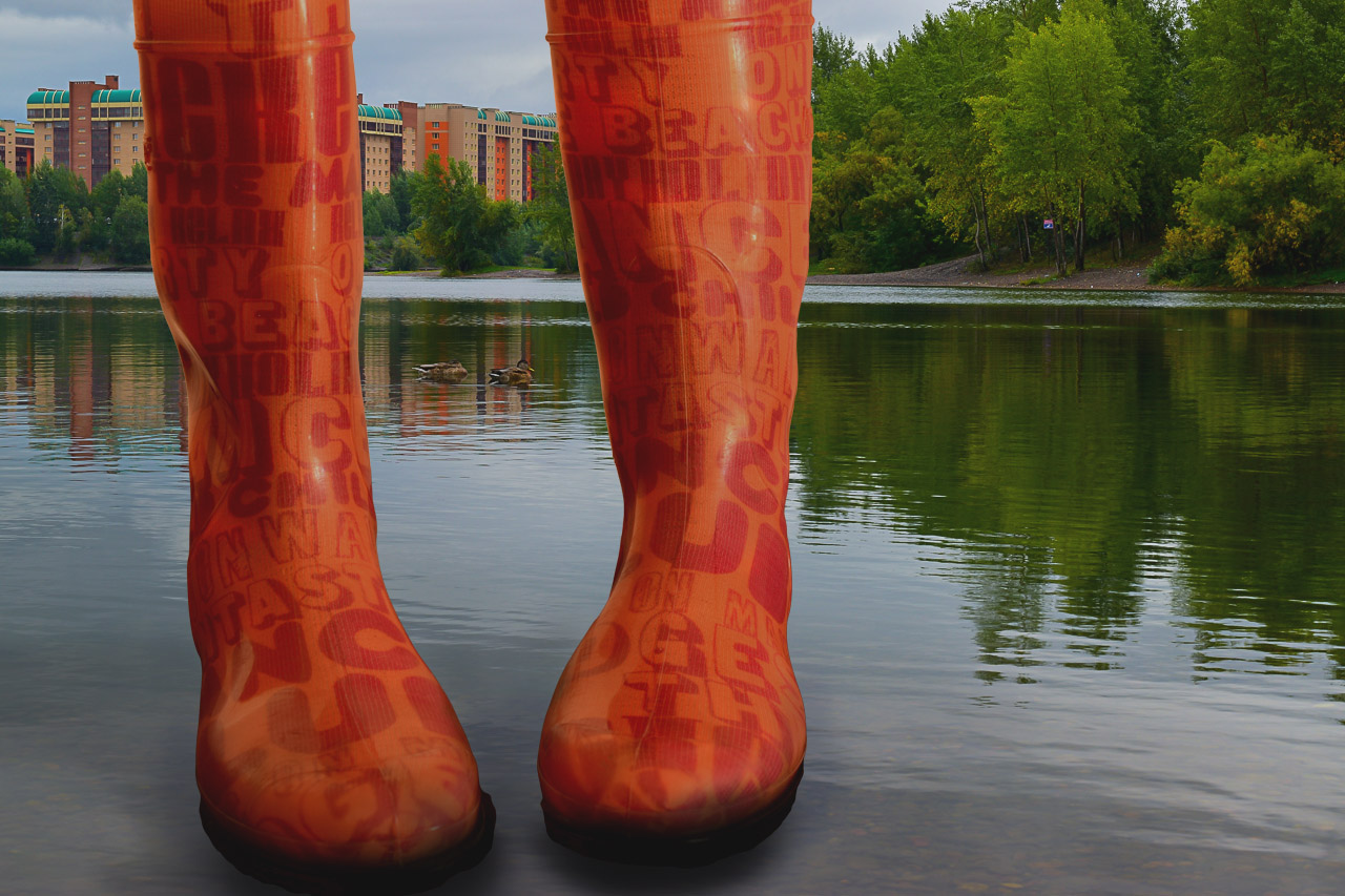 В данном случае пейзаж снят на фокусном в 50 мм, поэтому планы слегка сближены друг с другом, поэтому сапоги и не вписываются.