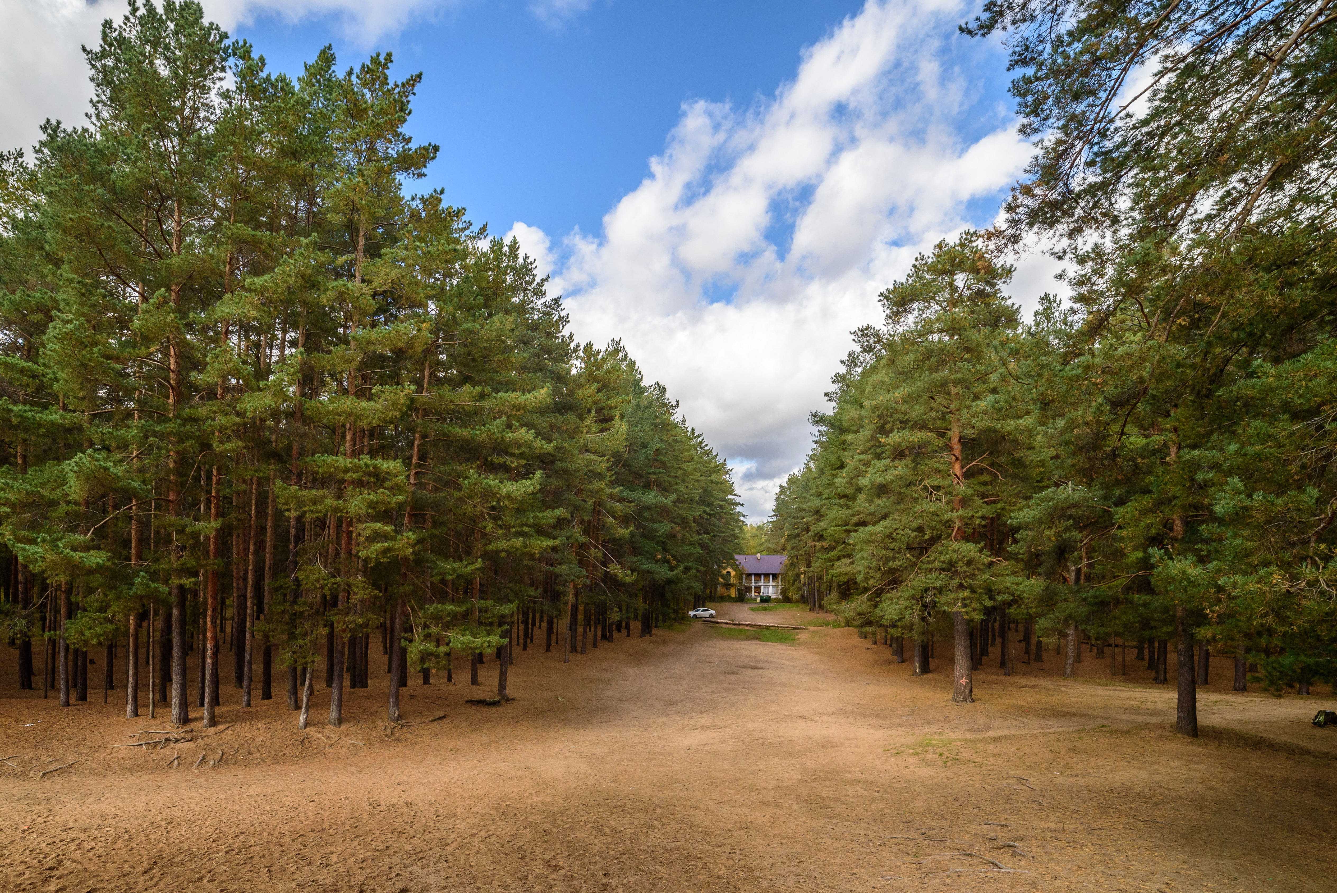 Нравится, ритм деревьев и линия дорожки, которая приводит к главному объекту.