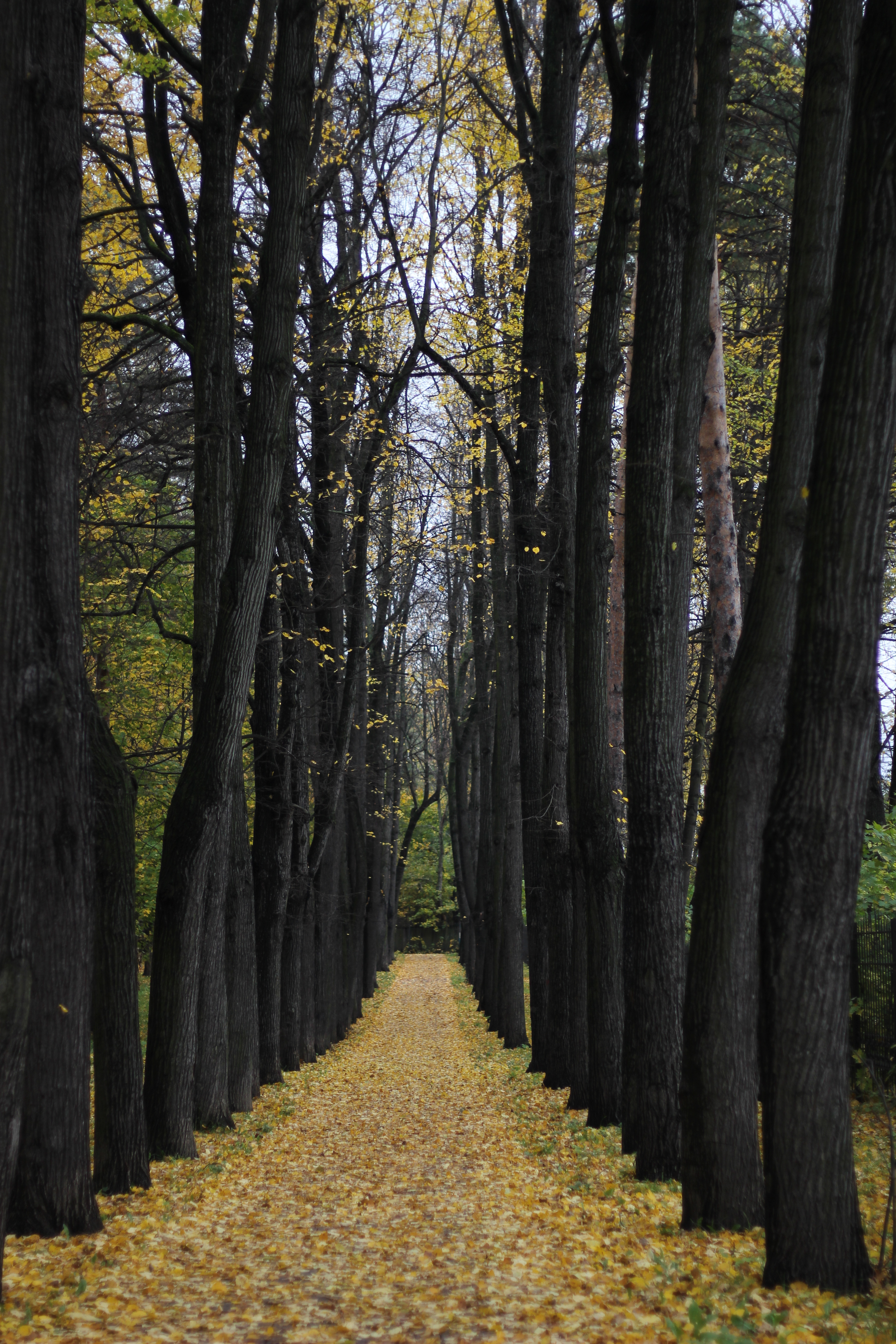 Очень красивый осенний вид с выразительной перспективой в виде сходящихся линий аллеи.