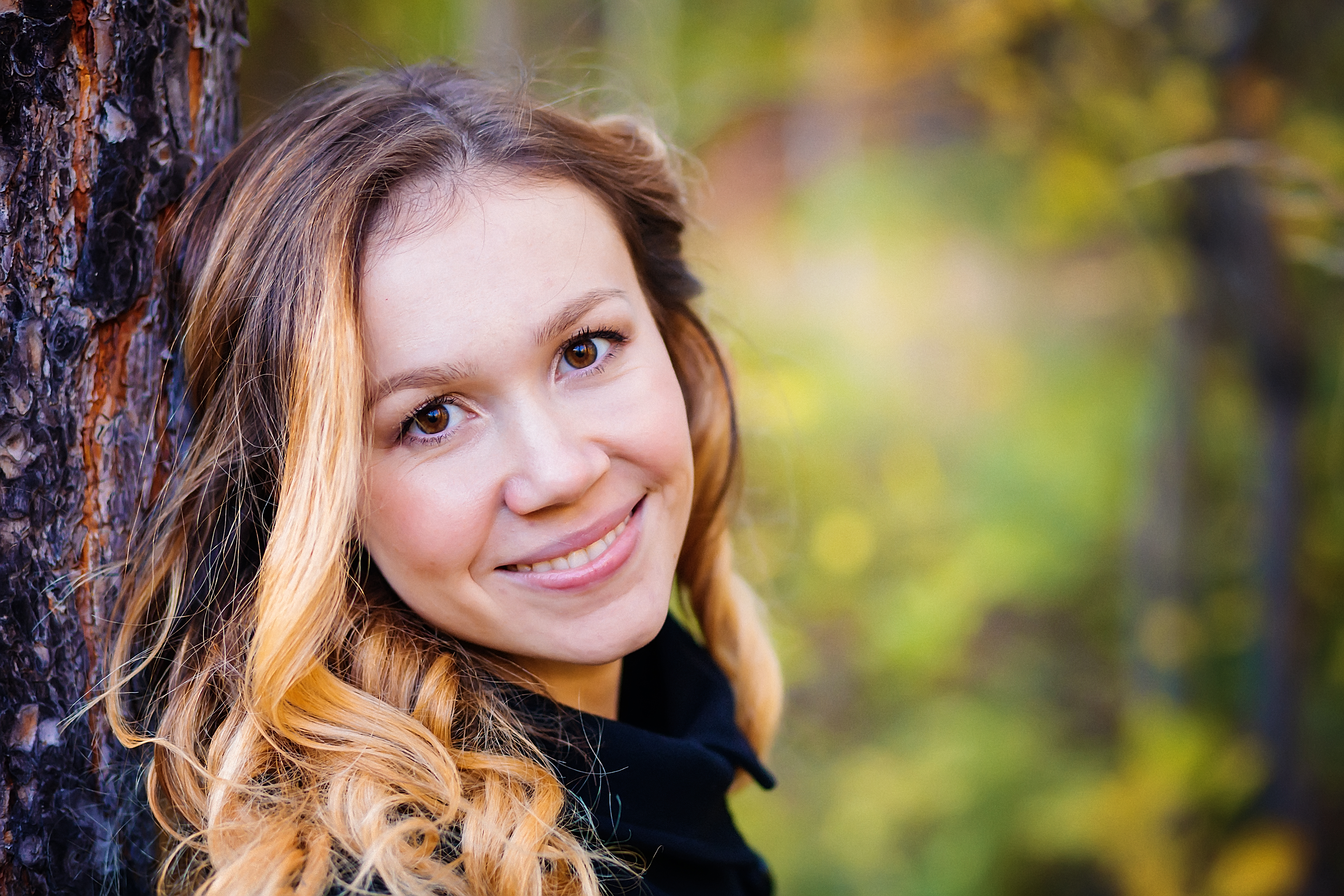 Добрый вечер! Вот такой портрет на природе получился. Знаю, что исо можно было пониже сделать и выдержку подлиннее, но рядом бегал малыш, которого тоже нужно было успеть поймать, потому выдержку делать короче побоялась)))