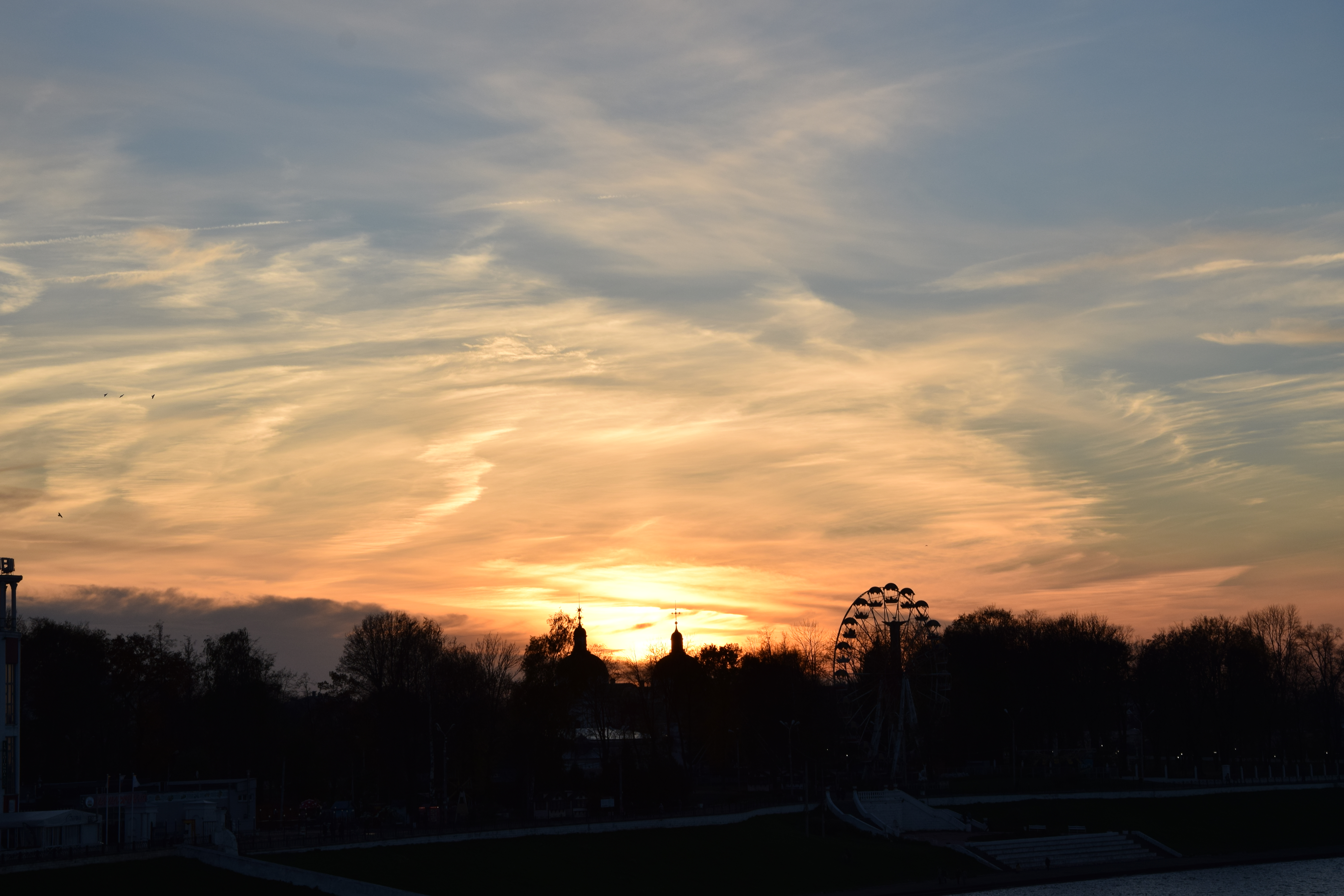 Очень эффектно смотрится контраст теплых и холодных тонов на закатном небе.