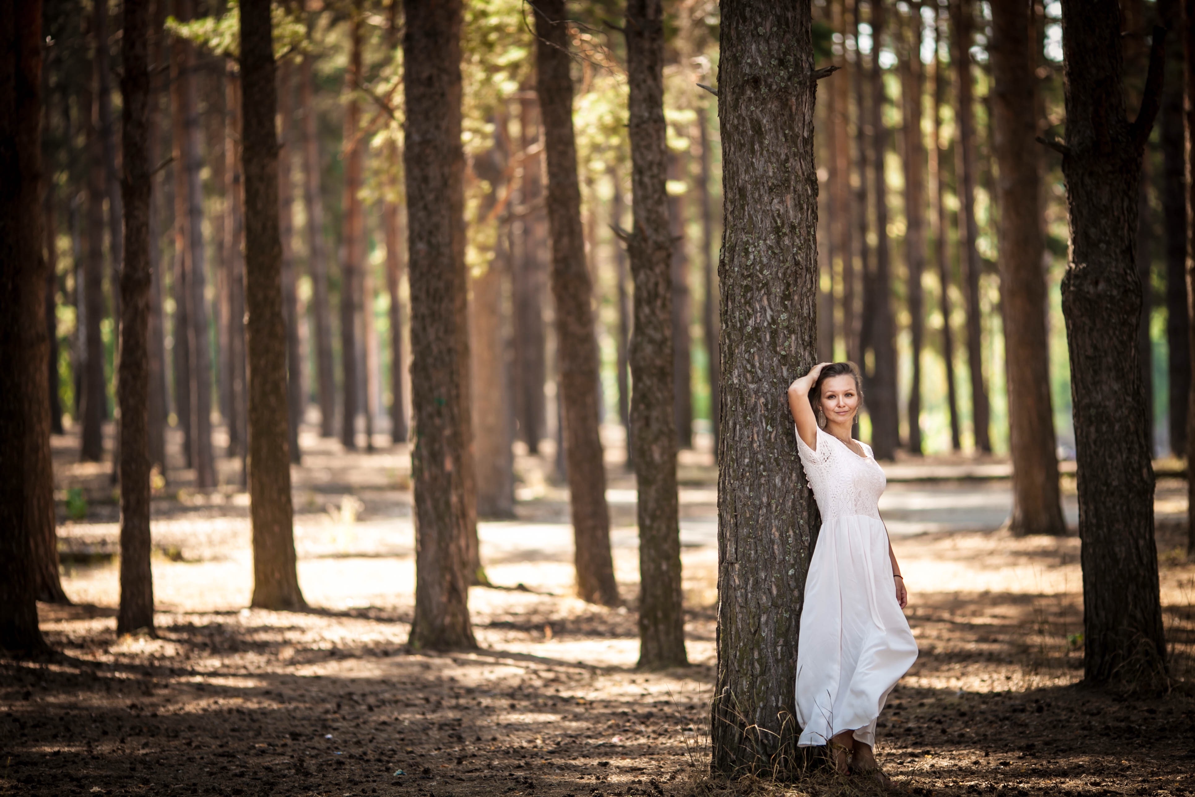 Длинное фокусное расстояние группирует стволы ближе друг к другу, они делают пространство вокруг модели более плотным, тесноватым.