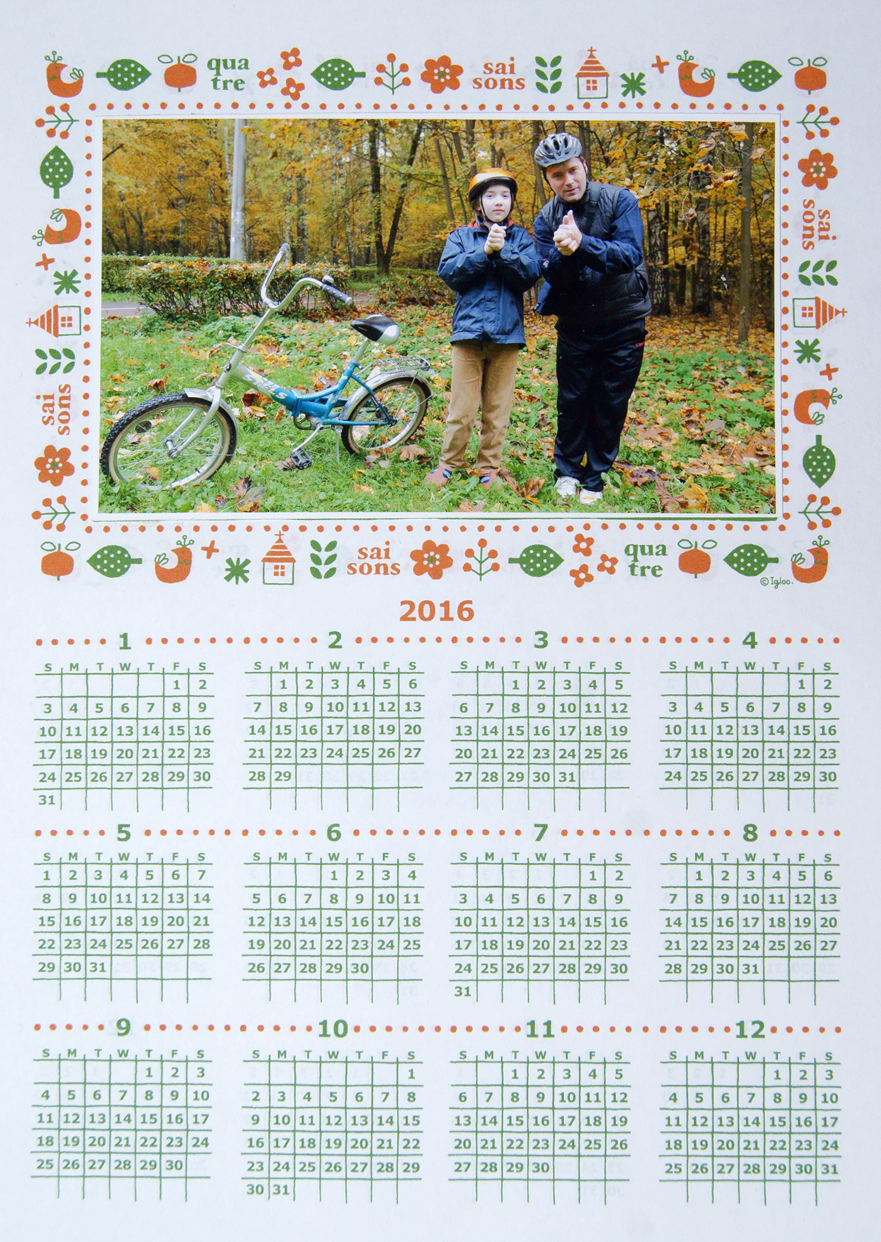 Здравствуйте! Понравились задания в фотошколе своим разнообразием и оригинальностью,например это - создание календаря собственными руками! Распечатав на МФУ Canon шаблон календаря,вставил и приклеил туда фотографию снятую недавно - автопортрет с сыном в осеннем парке.Календарь снял при дневном свете из окна на камеру со штатива (длительная выдержка 1/13 и зажатая диафрагма 6.3, iso 400) для того,чтобы весь календарь попал в глубину резкости.Белый баланс 5600 кельвинов выставлен в RAW редакторе.