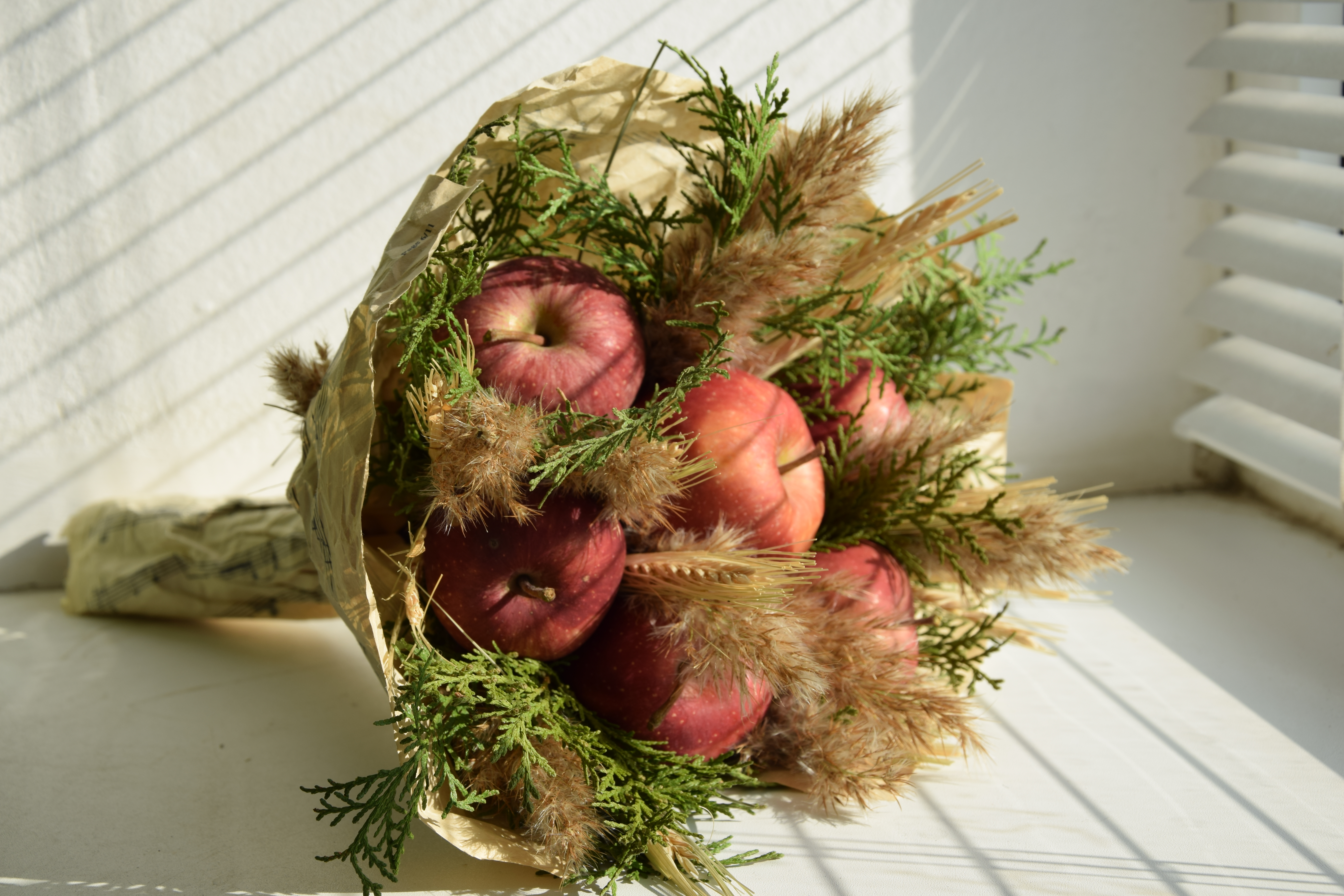 Однако важно только проконтролировать фокусировку. Сейчас камера сфокусирована на самой ближайшей части букета, на кончиках веток, а основная его часть в размытии. Я бы советовала фокусироваться на яблоках.