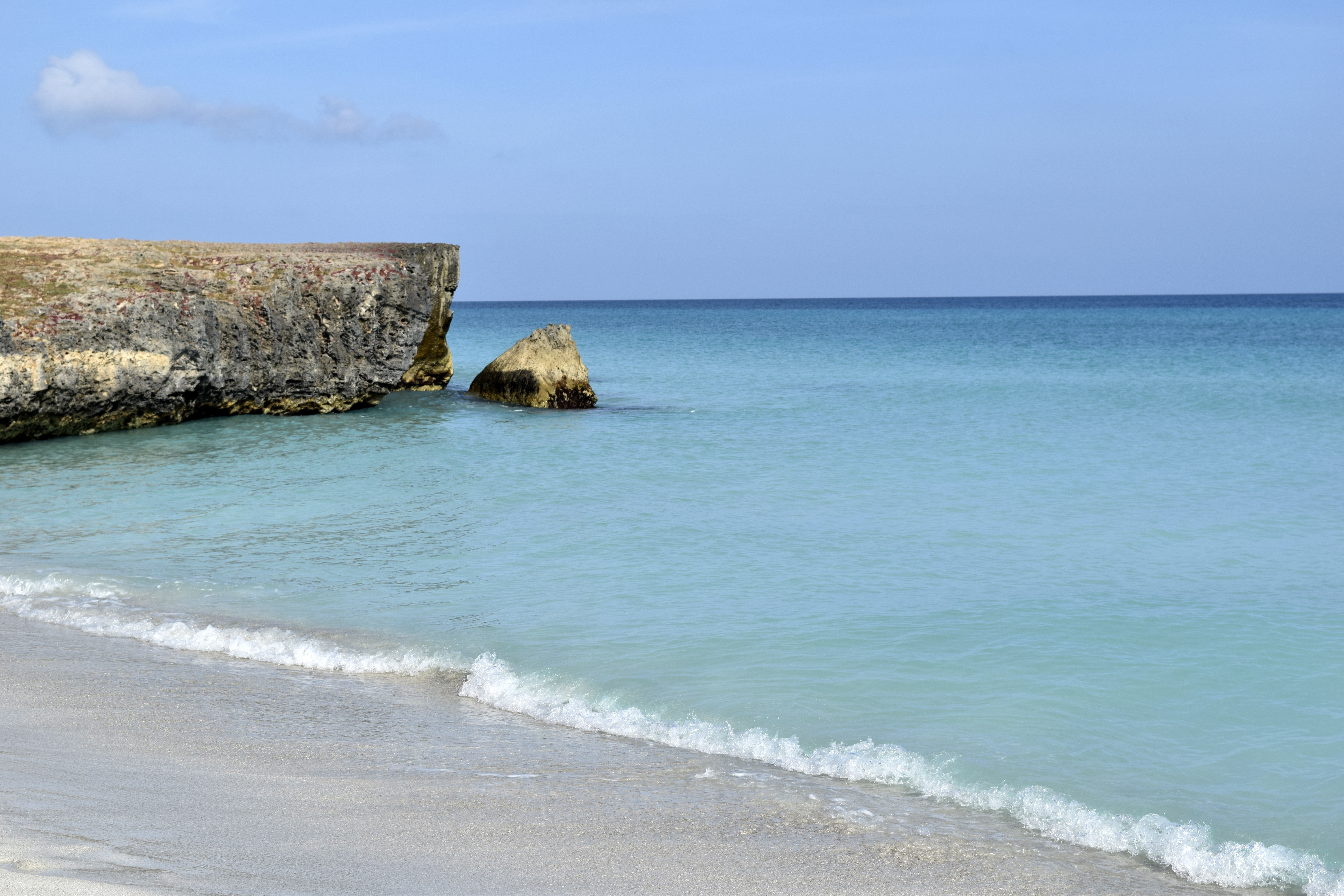 Здорово выделяется берег на фоне неба и моря.