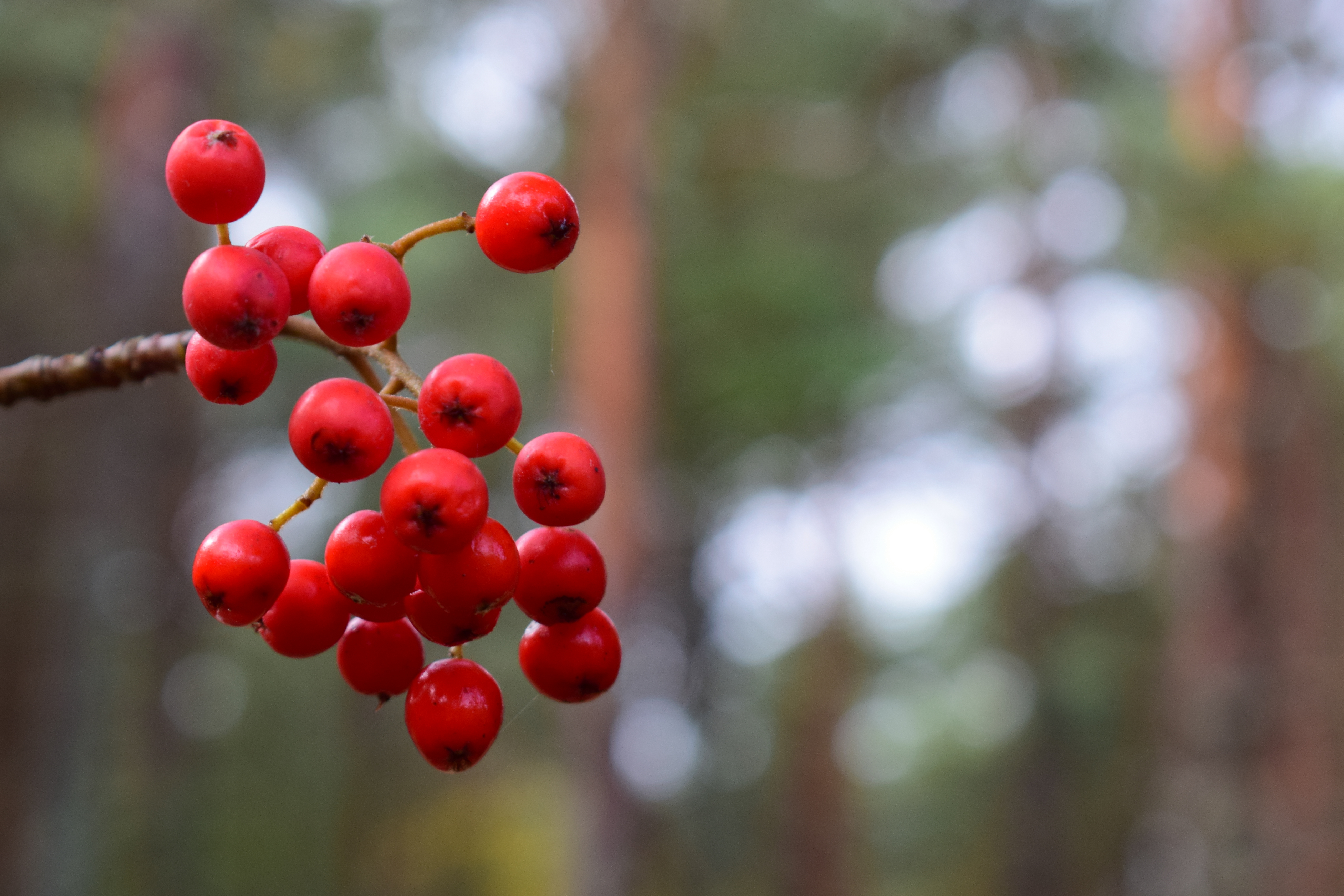 "Солидарность природы". Снимок показался интересным тем, что размытый фон, а именно белые пятна, как бы зеркально повторяют очертания ягод. Поэтому при кадрировании оставила больше пространства справа.