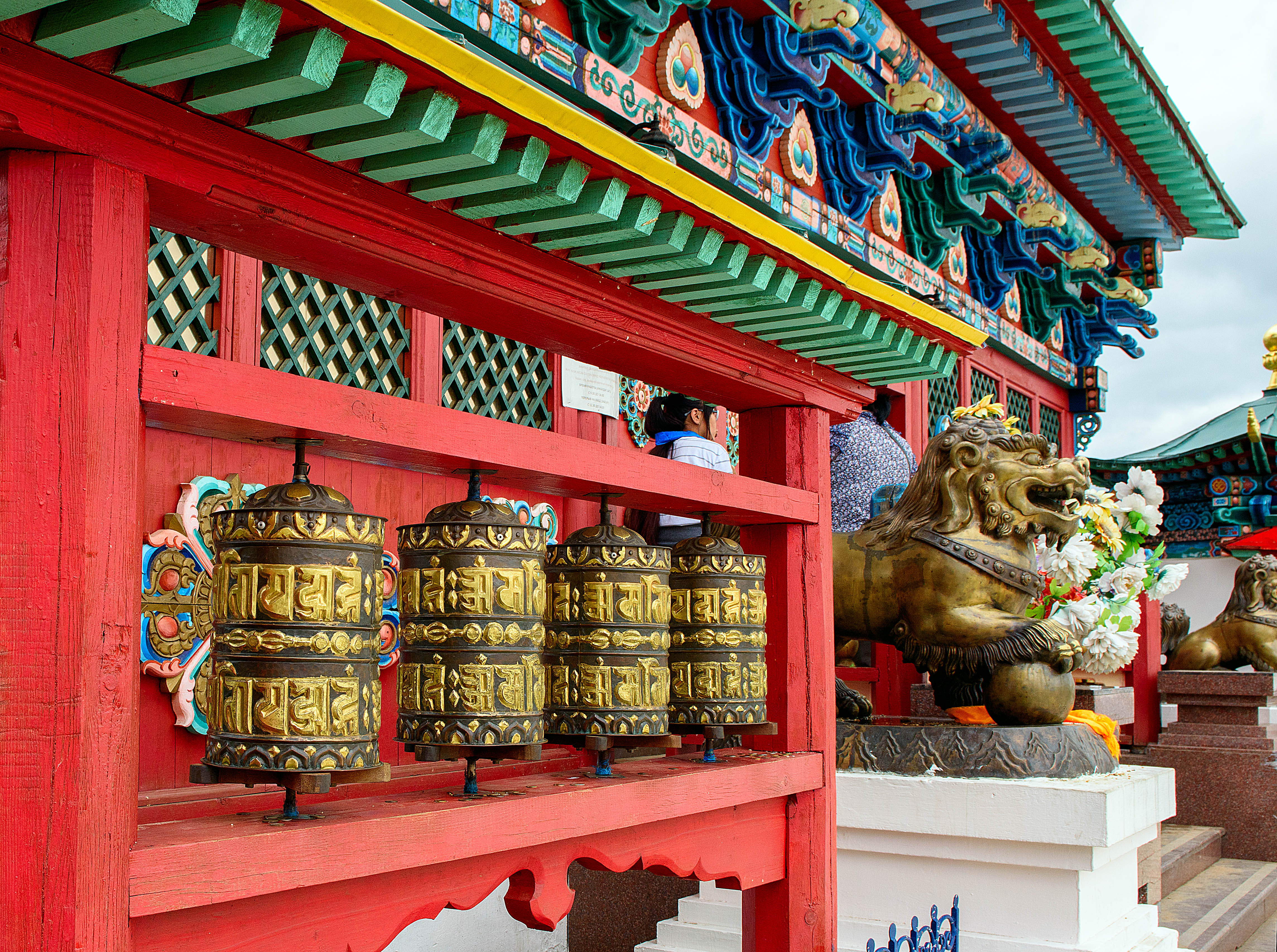 Нравятся яркие краски, что характерно для буддийских храмов. Благодаря пасмурной погоде удалось избежать жёстких теней и добиться плавных тональных переходов. По настройкам всё здорово, прикрыв диафрагму до F10 удалось уместить все детали в зону резко-изображаемого пространства. В кадре прослеживается хороший ритм, очень много ритмичных элементов.