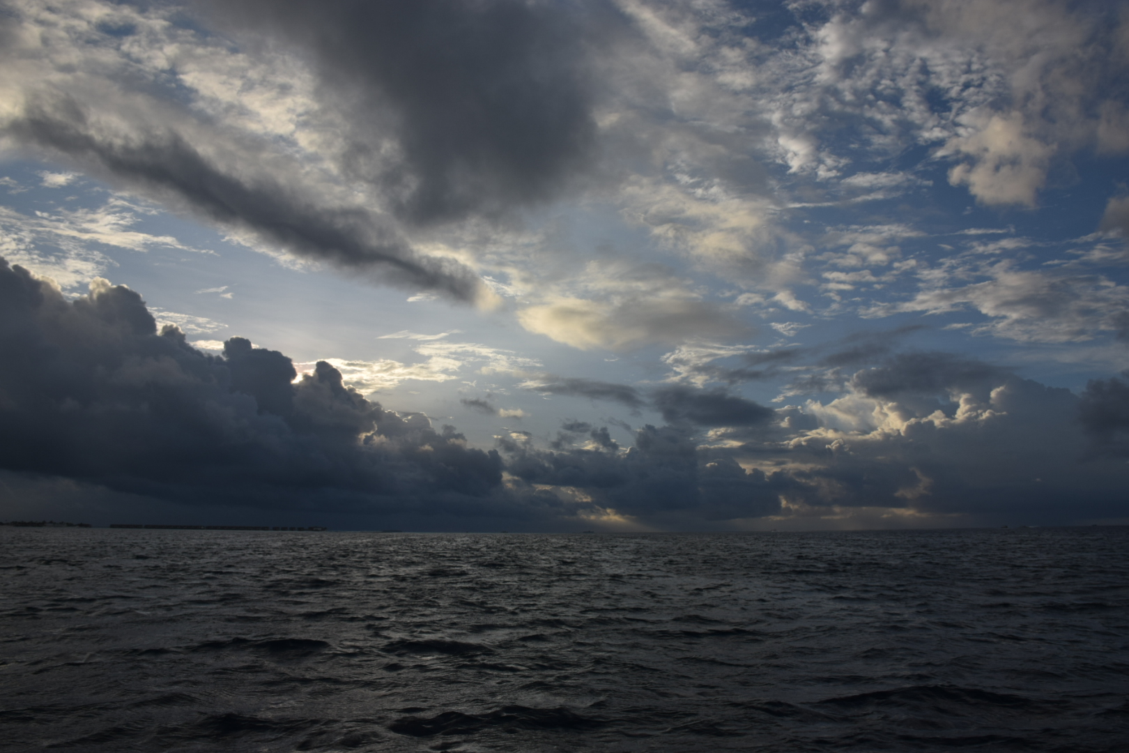 Грозовые тучные облака в купе с мягким рассеянным освещением и холодной цветовой палитрой образуют сильную атмосферу, настроение, вызывая у зрителя эмоции.