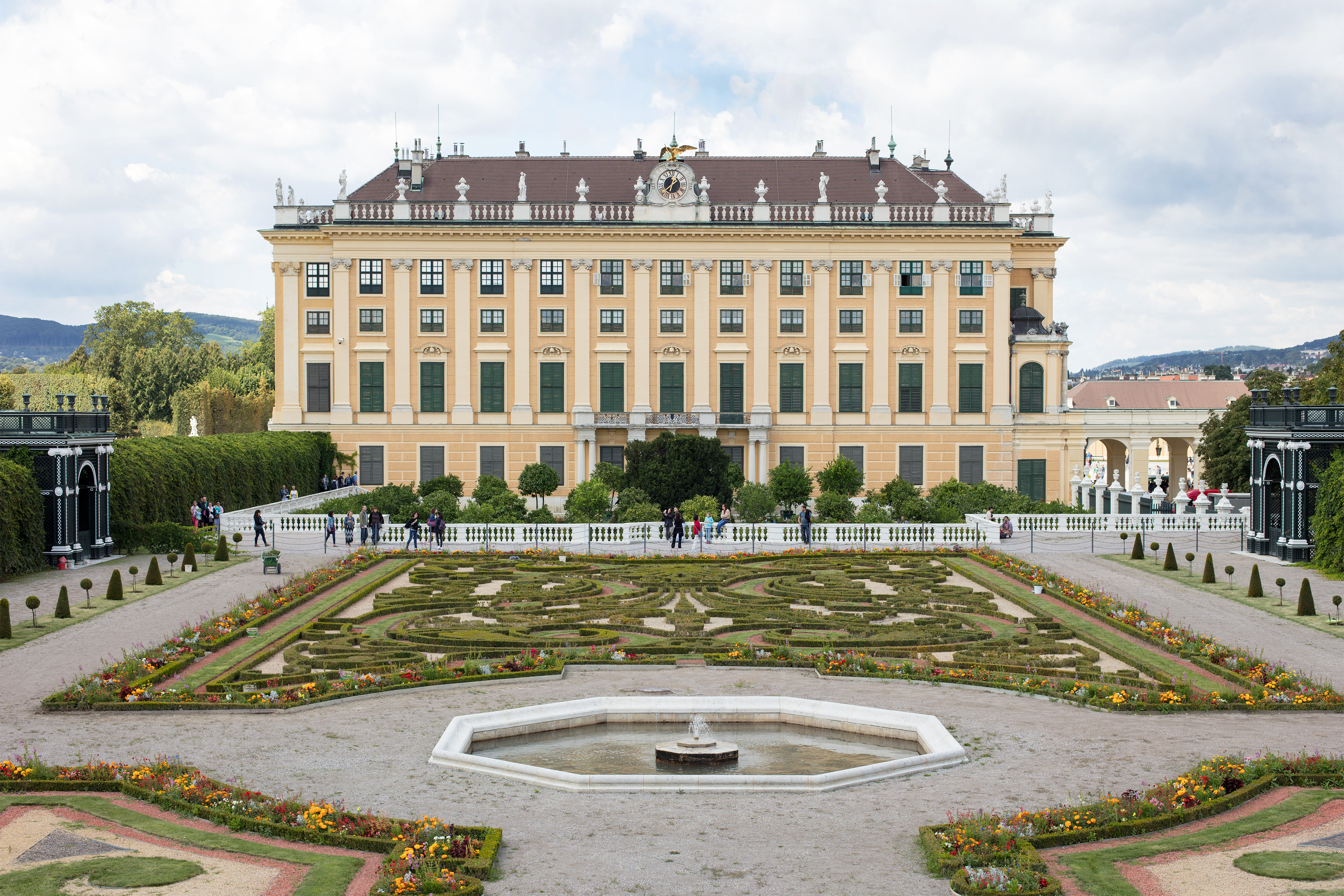 Основой композиции является здесь, в первую очередь симметрия - она выражена и фасадом здания, и симметричным фигурным газоном и даже расположением фонтана по оси композиции.