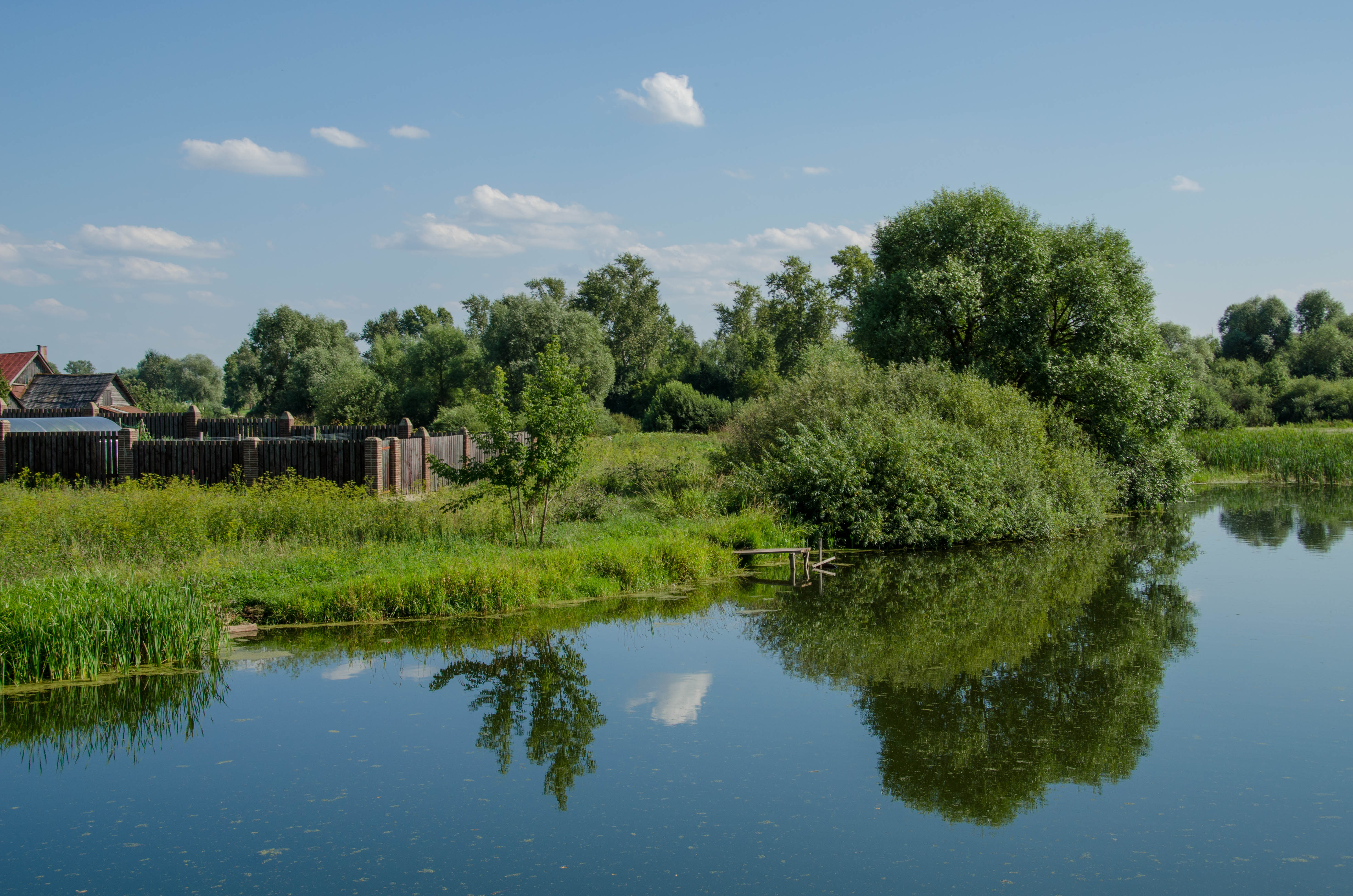 Здравствуйте! У меня получилась такая симметрия. Облачко, дерево и кустарник симметрично отражаются в воде.