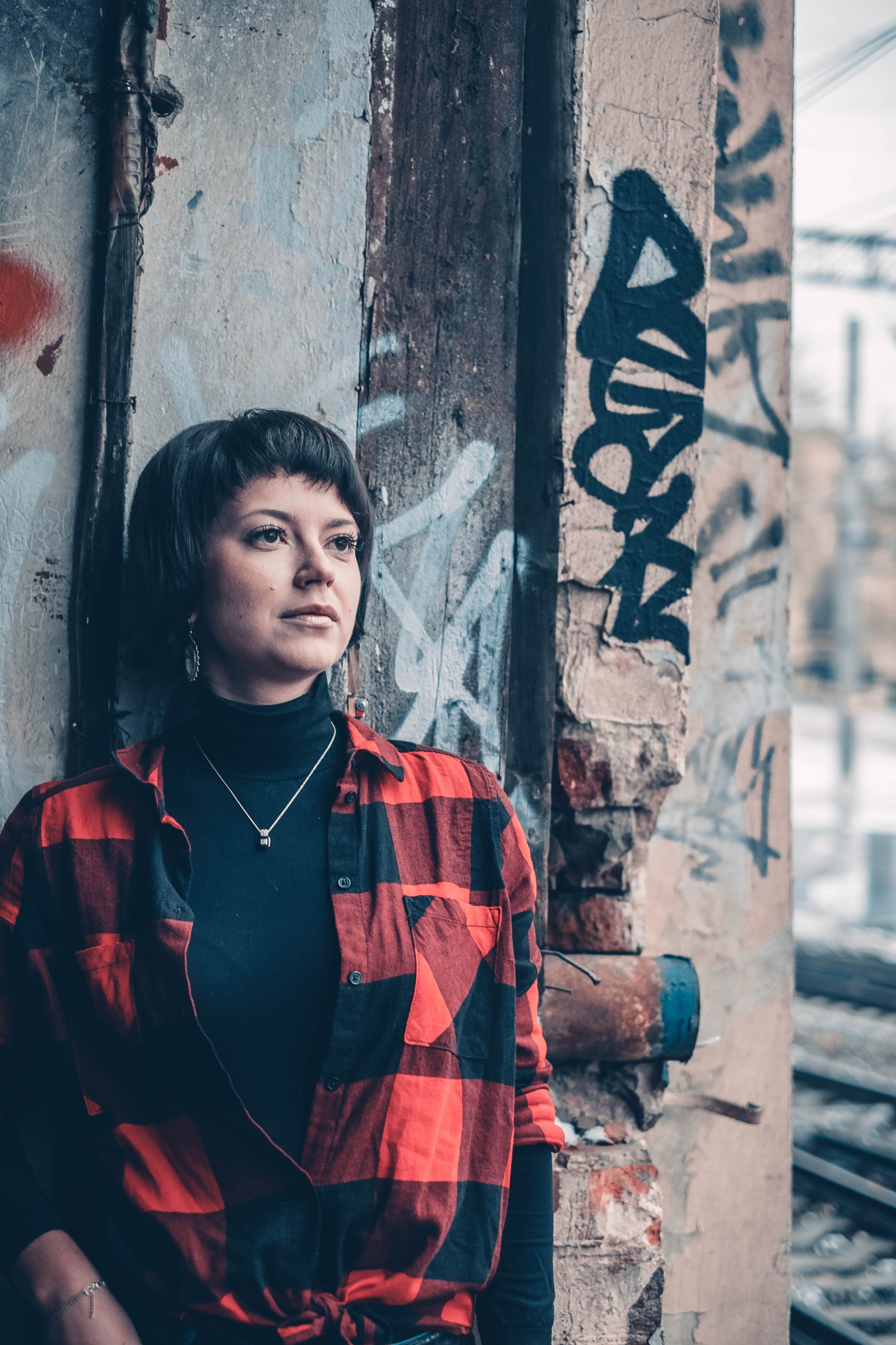Модель стоит в более темном углу, но лицом к свету, поэтому левая сторона получилась более затемненной. Взгляд задумчивый, что удалось передать на фото. С резкость, вроде проблем нет.