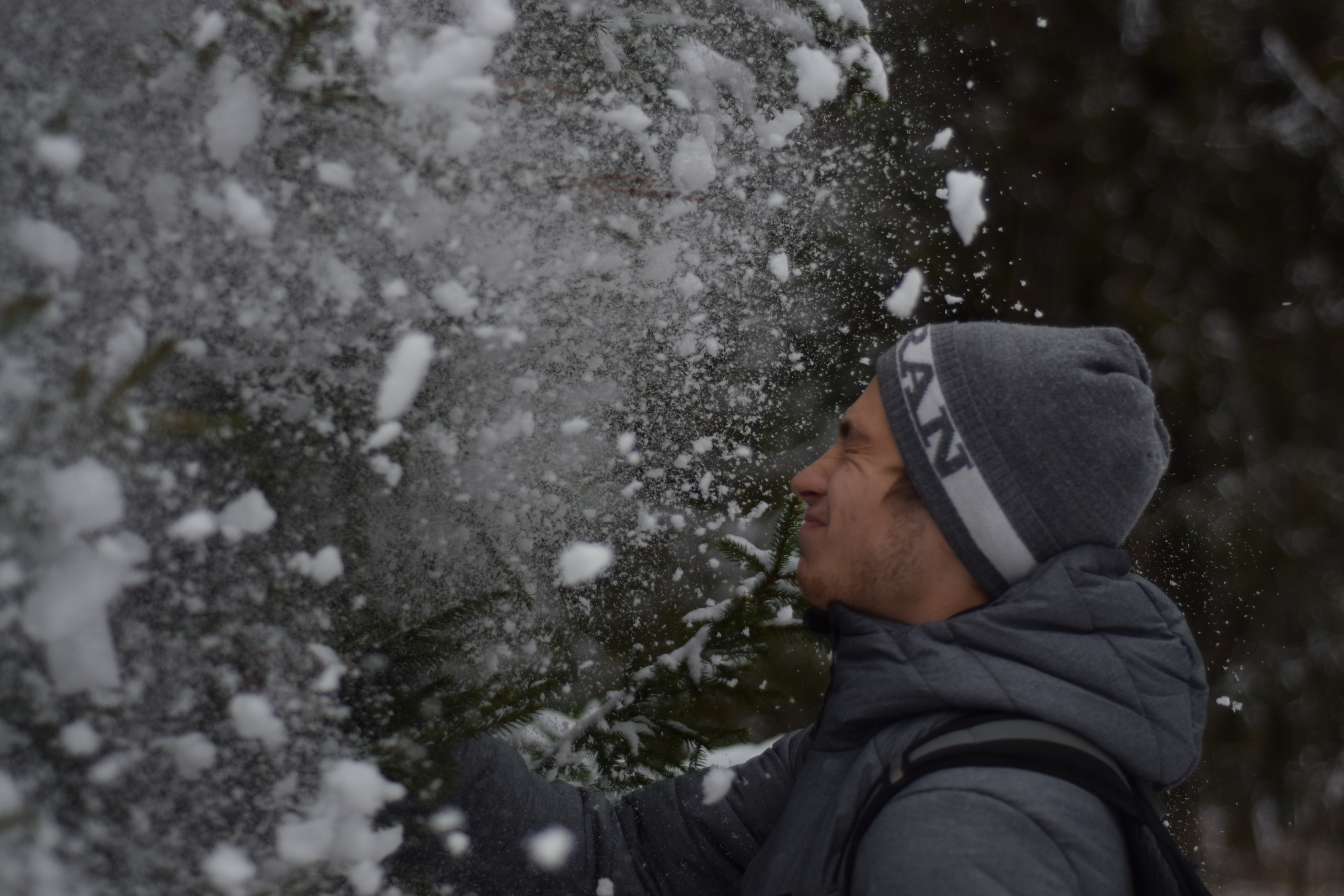 Ух как здорово получилось! Короткая выдержка 1/1600 позволила отлично "заморозить" момент. Хлопья снега буквально, замерли в воздухе. Исо низкое, так что качество на высоте. Диафрагма 1,8 позволила выделить главного героя в кадре резкостью, а фон увести в нерезкость. Смотрится эффектно!