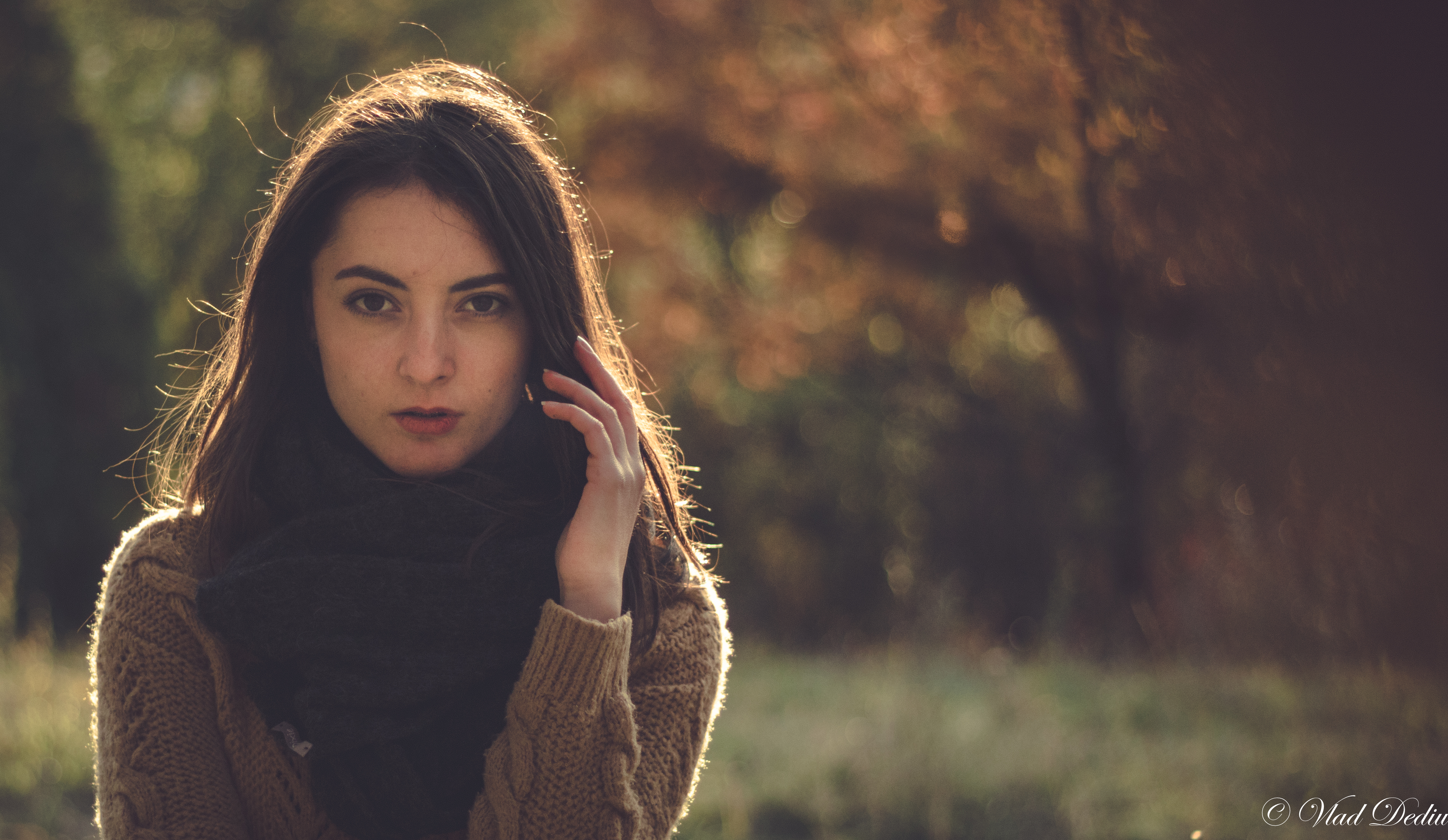 Lumina, culorile, starea modelului sunt perfect autumnale, poetice.
