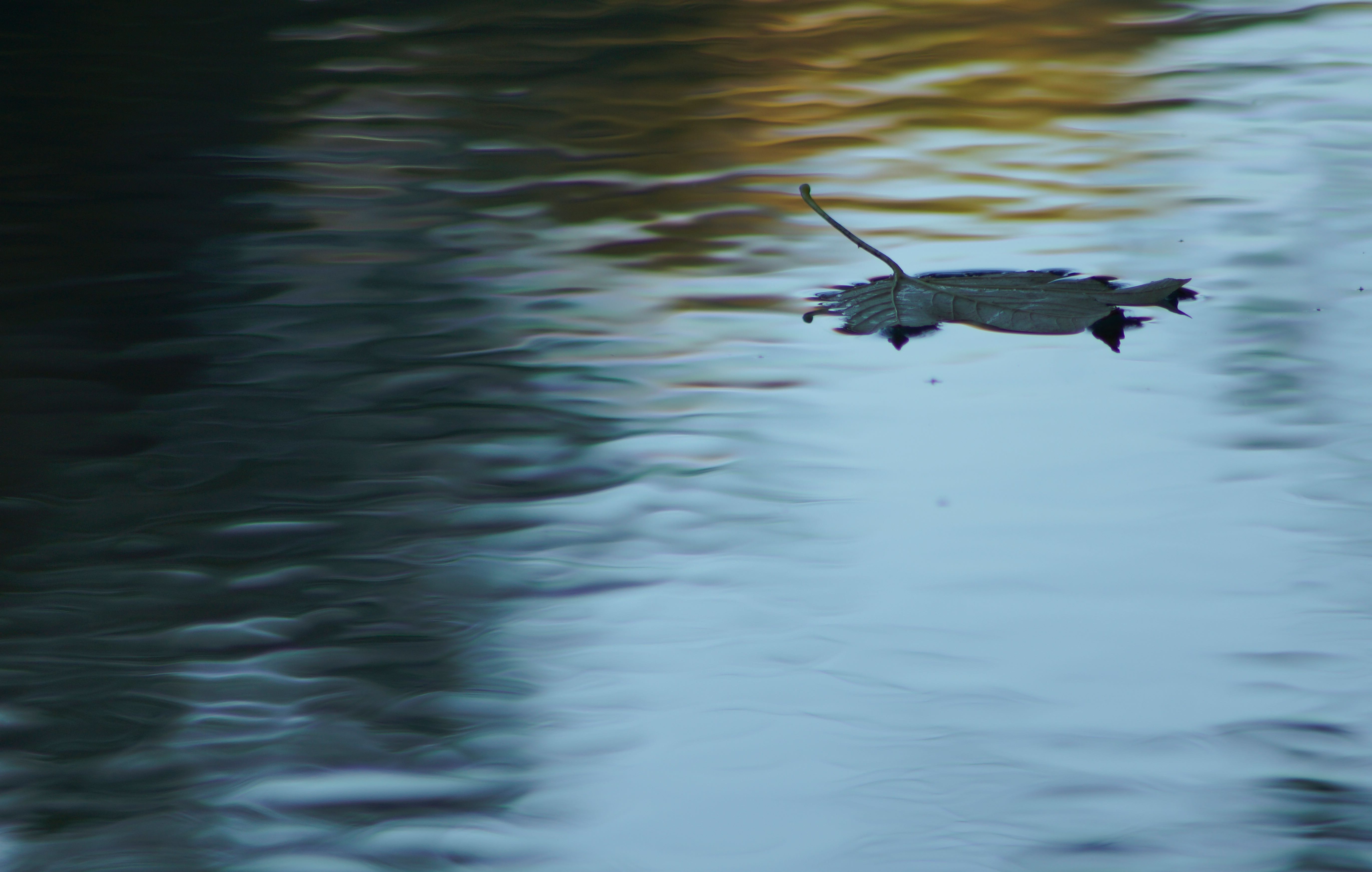 Было бы лучше, если листик находится на фоне "желтой" воды, так бы он больше выделялся на фотографии. А то сейчас он по тону близко к фону и из-за этого они немного сливаются. Старайтесь обращать внимание на такие вещи :)