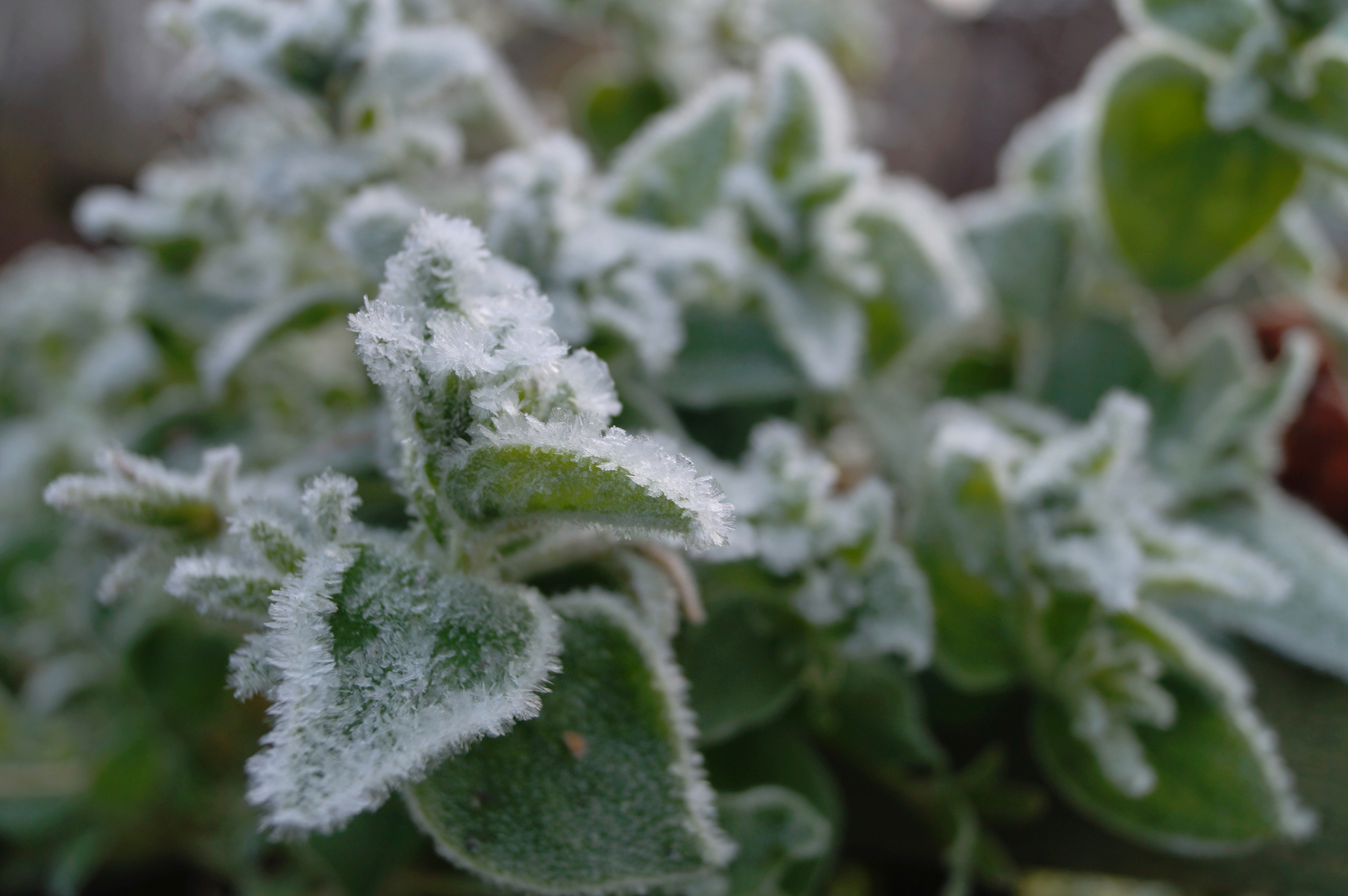 Привлекательная зарисовка с ощущением наступающей зимы. Как же чудесно смотрится зеленый живой цвет под кристаллами льда. Необычно! Красиво!
