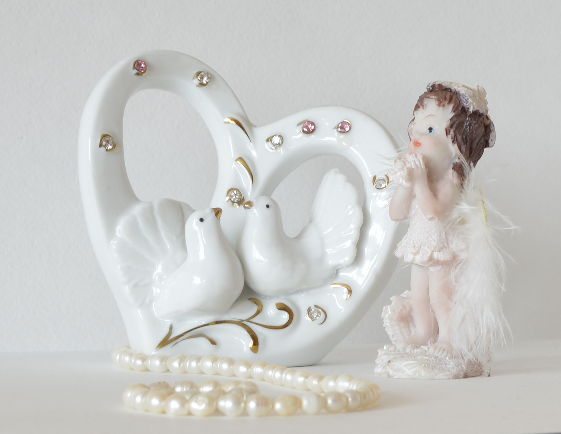 Композиция составлена верно, снимок выглядит взвешенно, цельно, компактно, при этом легко читается зрителем, нет ни чего лишнего. Фигурка девочки, голуби в сердечке и бусинки хорошо согласуются друг с другом и при этом весьма гармонично вписываются в пространство единой композиции.