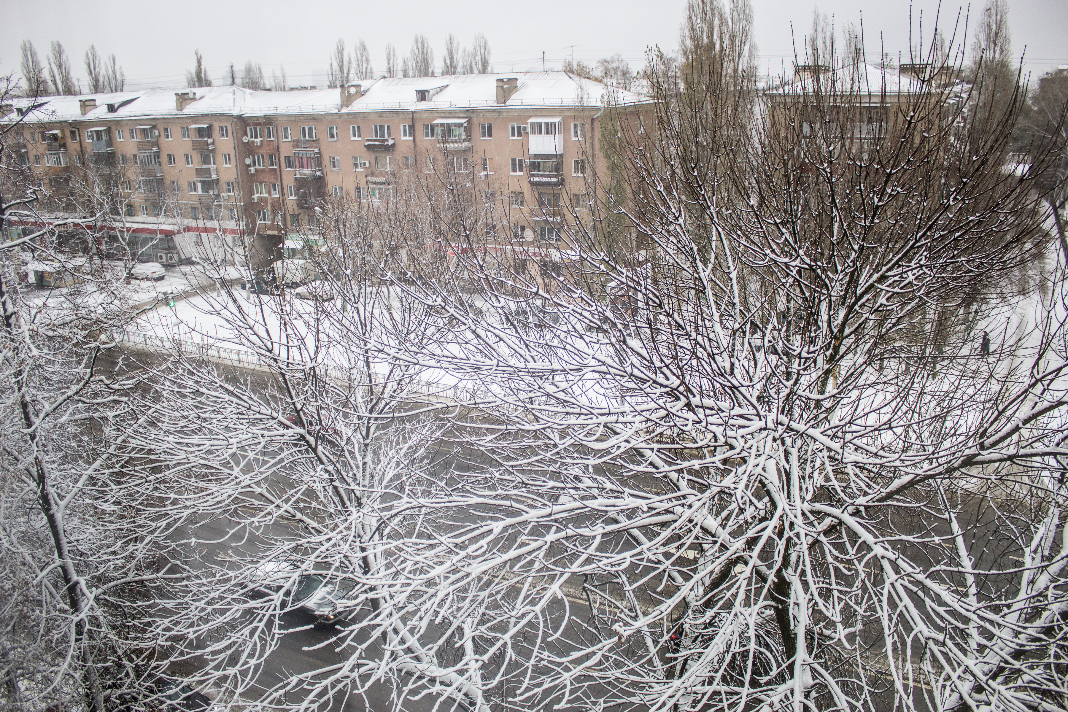 Как вариант, можно было увеличить фокусное расстояние (зум), чтобы крупнее показать ветки в снегу - все-таки они тут является смысловым центром и создают сюжет :)