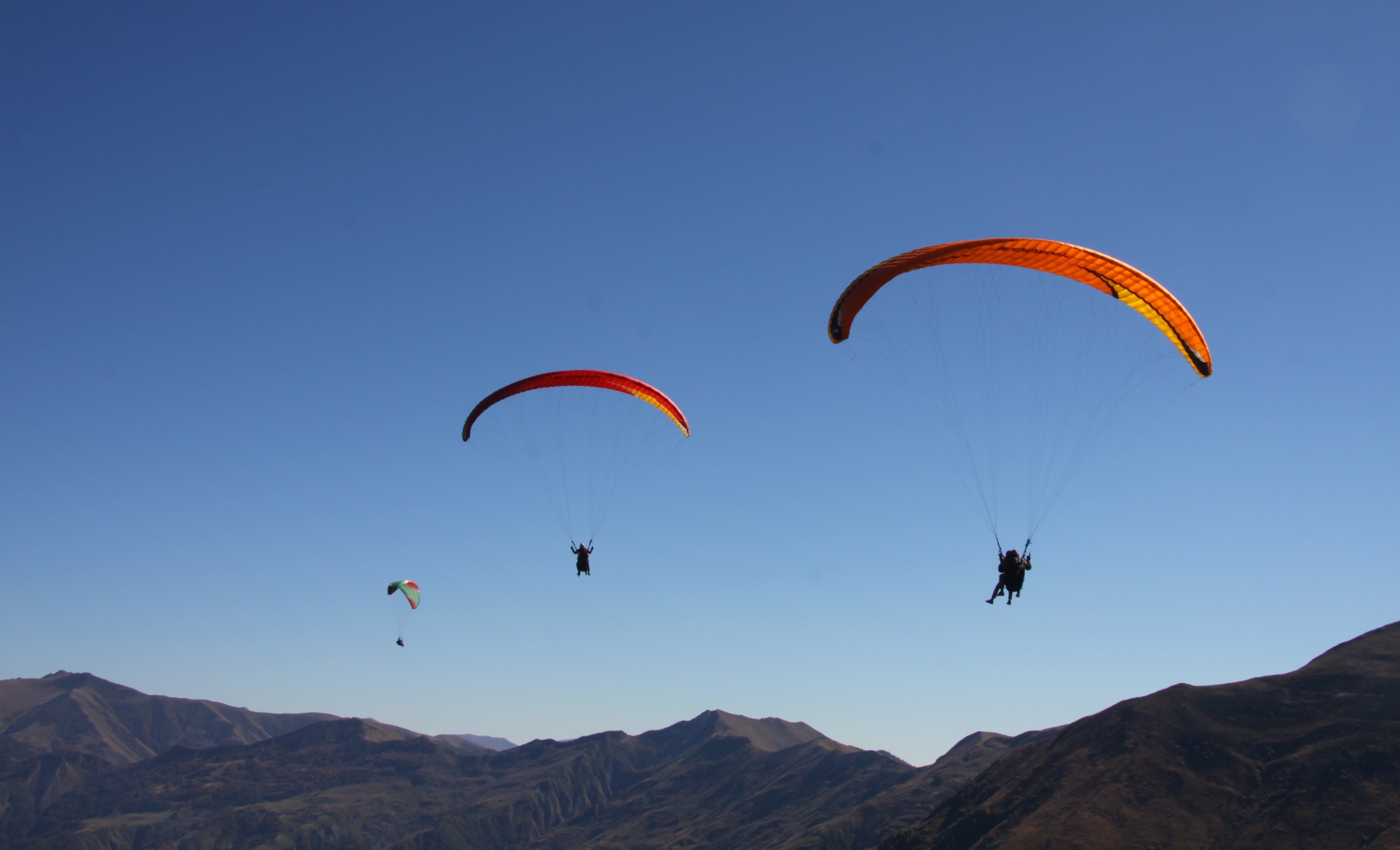 Лаконичный кадр! Подвижный! Очень красивый в цвете, в формах, сюжете. Выгодно вышло по масштабу. Горы, небо, парашюты! Супер!