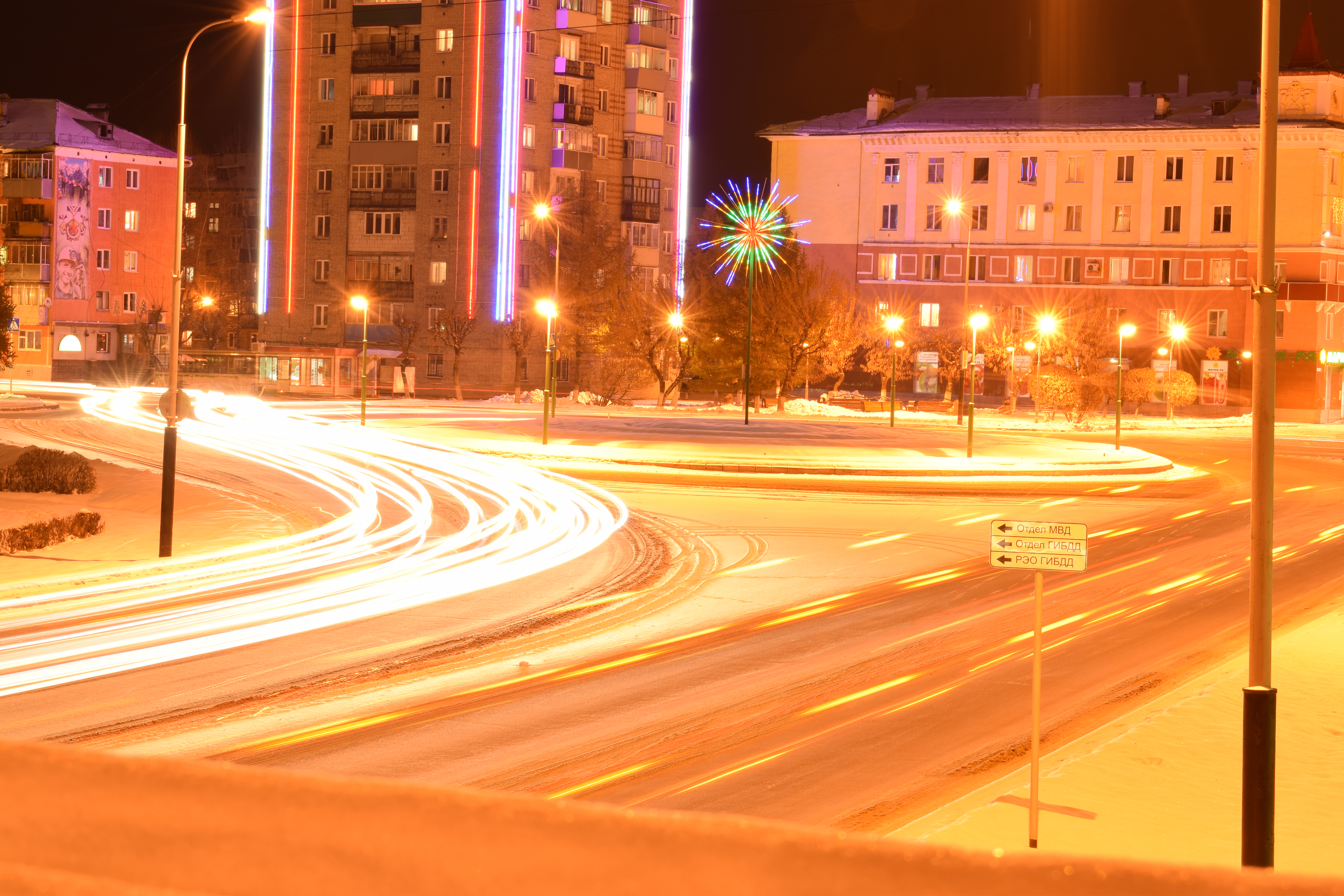 Вы отлично справились с заданием! Использование длинной выдержки позволило получить интенсивные смазы от фар проезжающих машин. Прикрытая диафрагма позволила избежать пересвета, ограничив лишнее освещение. А так же дала эффект в виде лучиков от источников света. Кадр хорошо скомпонован, нравится множество подобных друг-другу линий. Большое фокусное оасстояние позволило избежать искажений геометрии. Экспозиция выбрана верно, к настройкам замечаний нет.