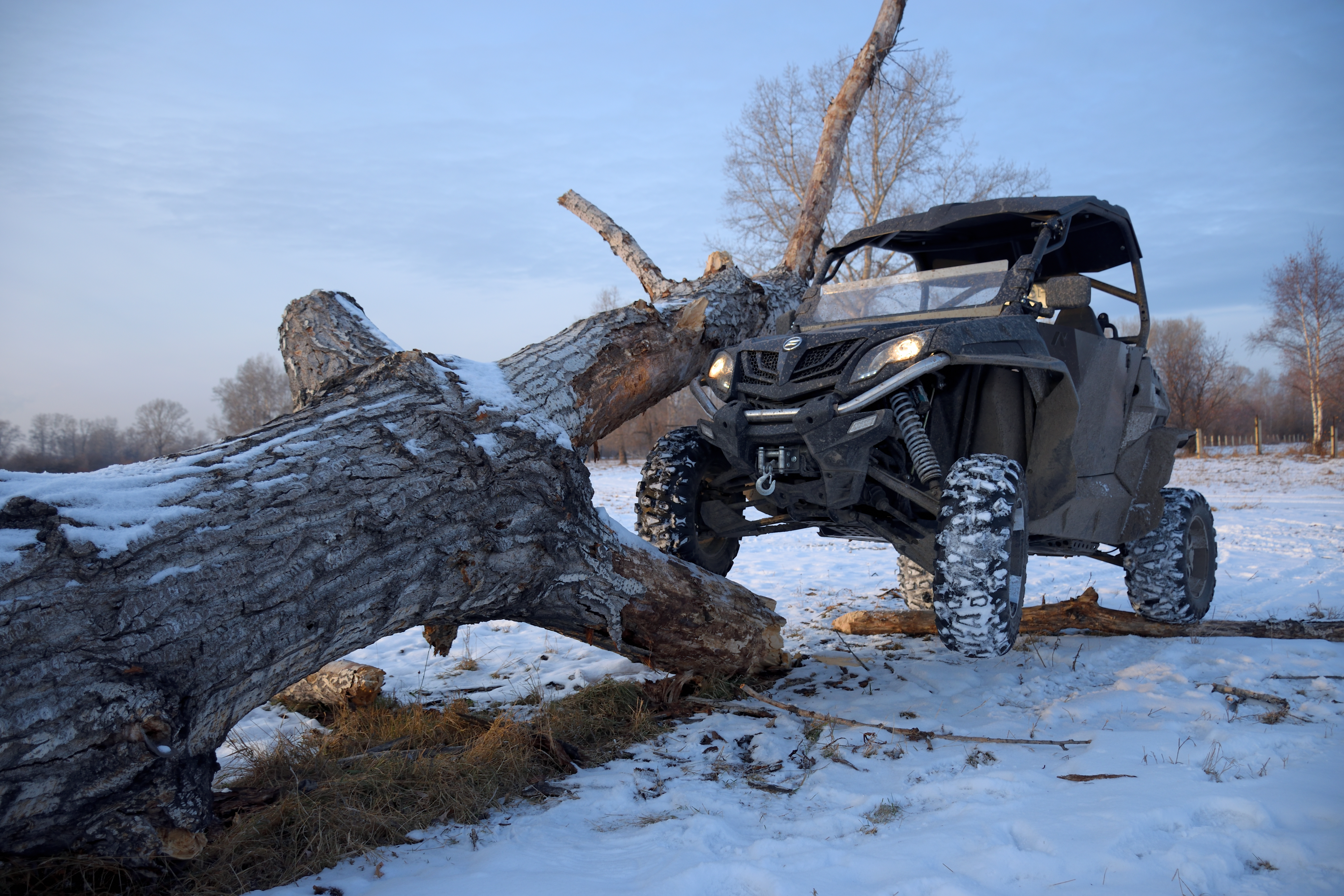 "Природа vs Железо" Использовал расширение динамического диапазона, чтобы осветлить темные участки под аркой переднего левого колеса и обратную сторону правого колеса. Вручную корректировал баланс белого в холодную сторону, чтобы придать атмосферу суровой зимы.