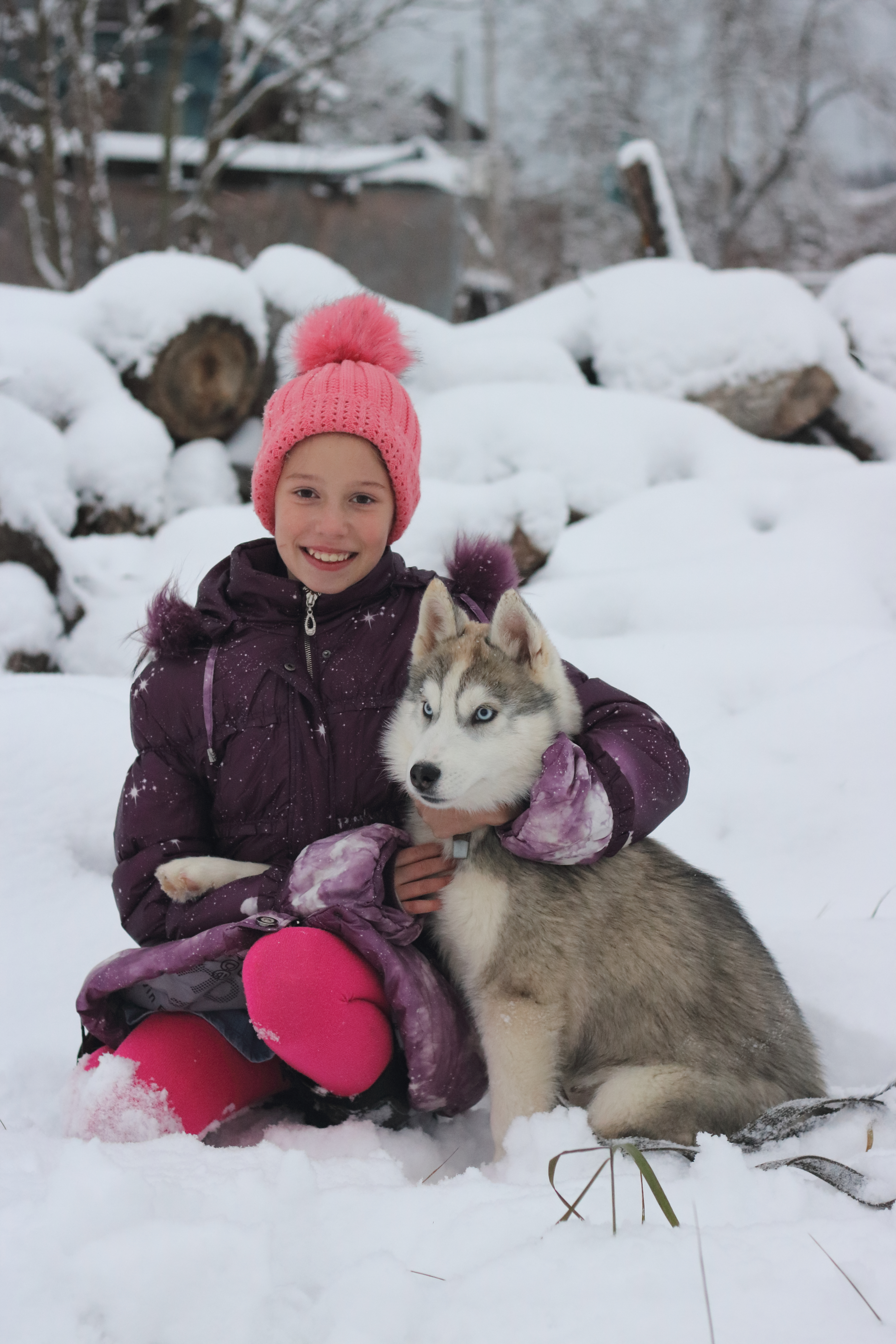 Камера сфокусирована на собачку, к сожалению , девочка не совсем попала в поле резкости , так как глубина резкости маленькая. В данном случае стоило прикрыть чуть сильнее диафрагму , чтобы оба участника кадра попали в поле резкости.