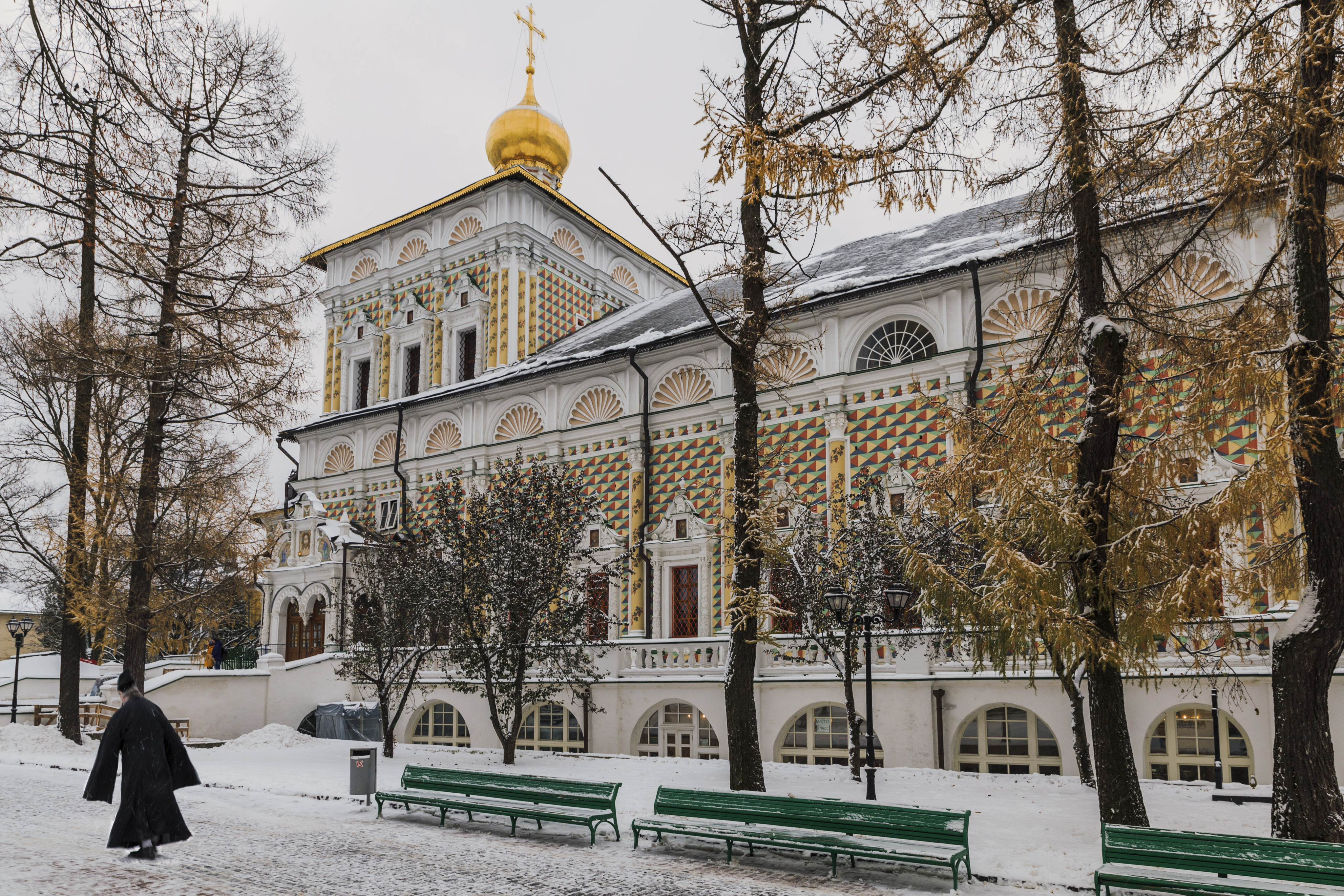 Здравствуйте! Фотография из путешествия по Сергиево-Троицкой Лавре. Шел снег и надувал ветер.