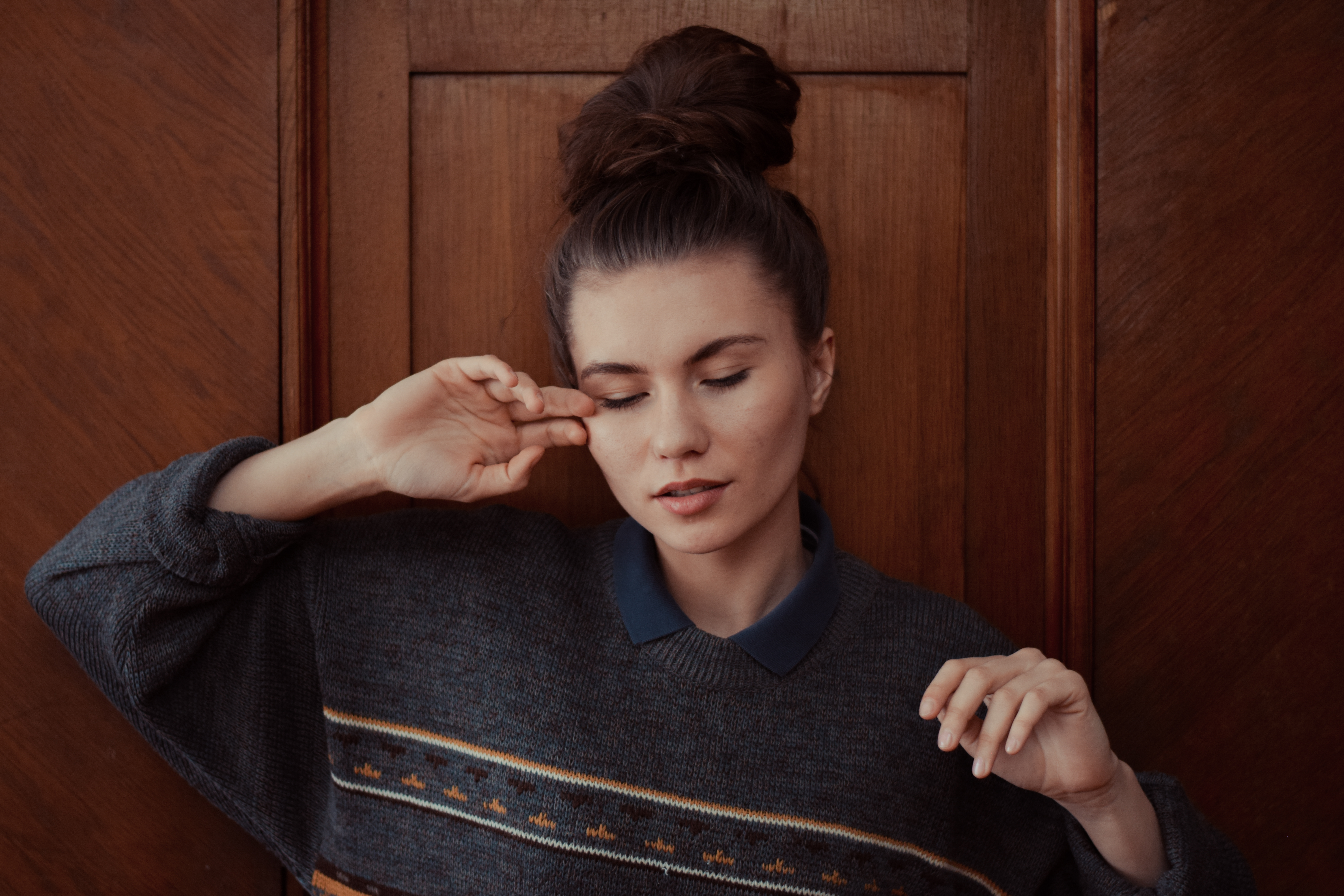 Модель выглядит динамично и весьма женственно за счёт подходящей жанровой позы, красиво смотрится положение рук модели, сделан акцент на её прикрытых глазах и мимике, читаются некоторые эмоции и настроение, создаётся атмосфера.