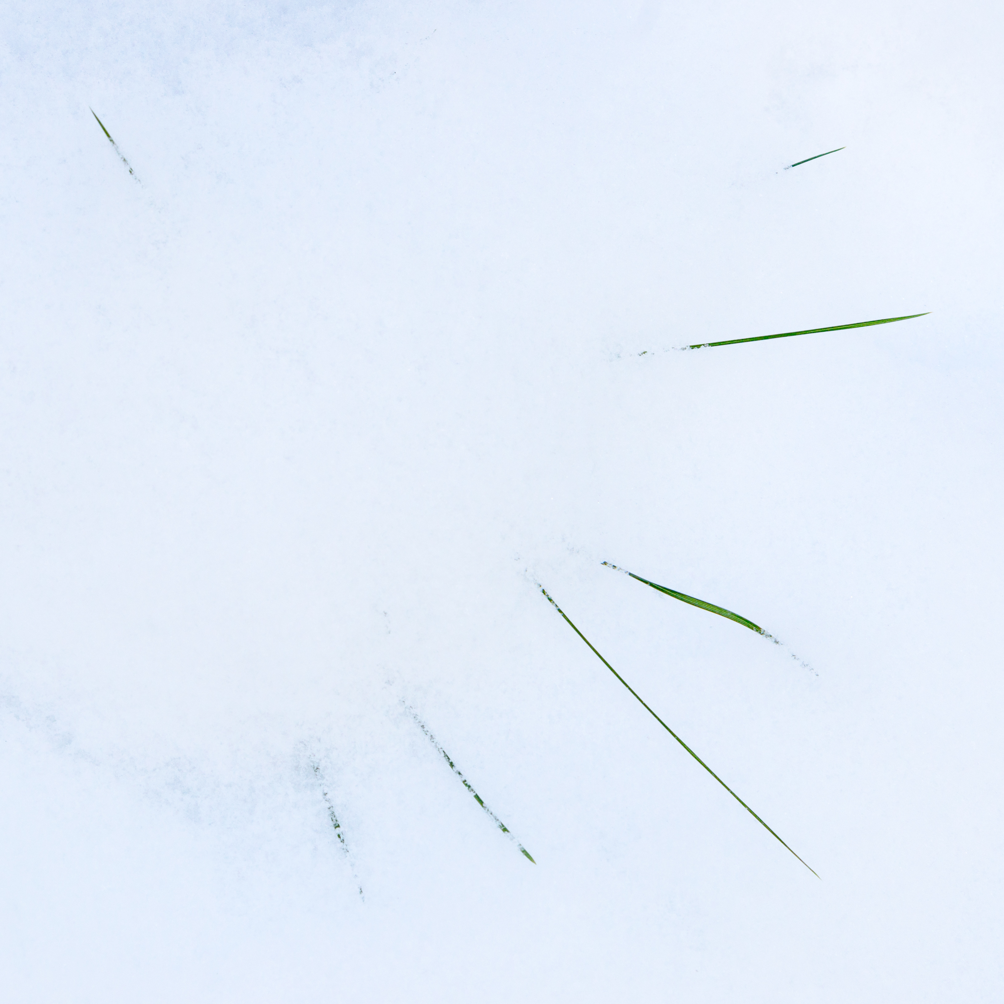 Из под снега пробиваются зеленые травинки. Получился минимализм, но выглядит, мне кажется, интересно.