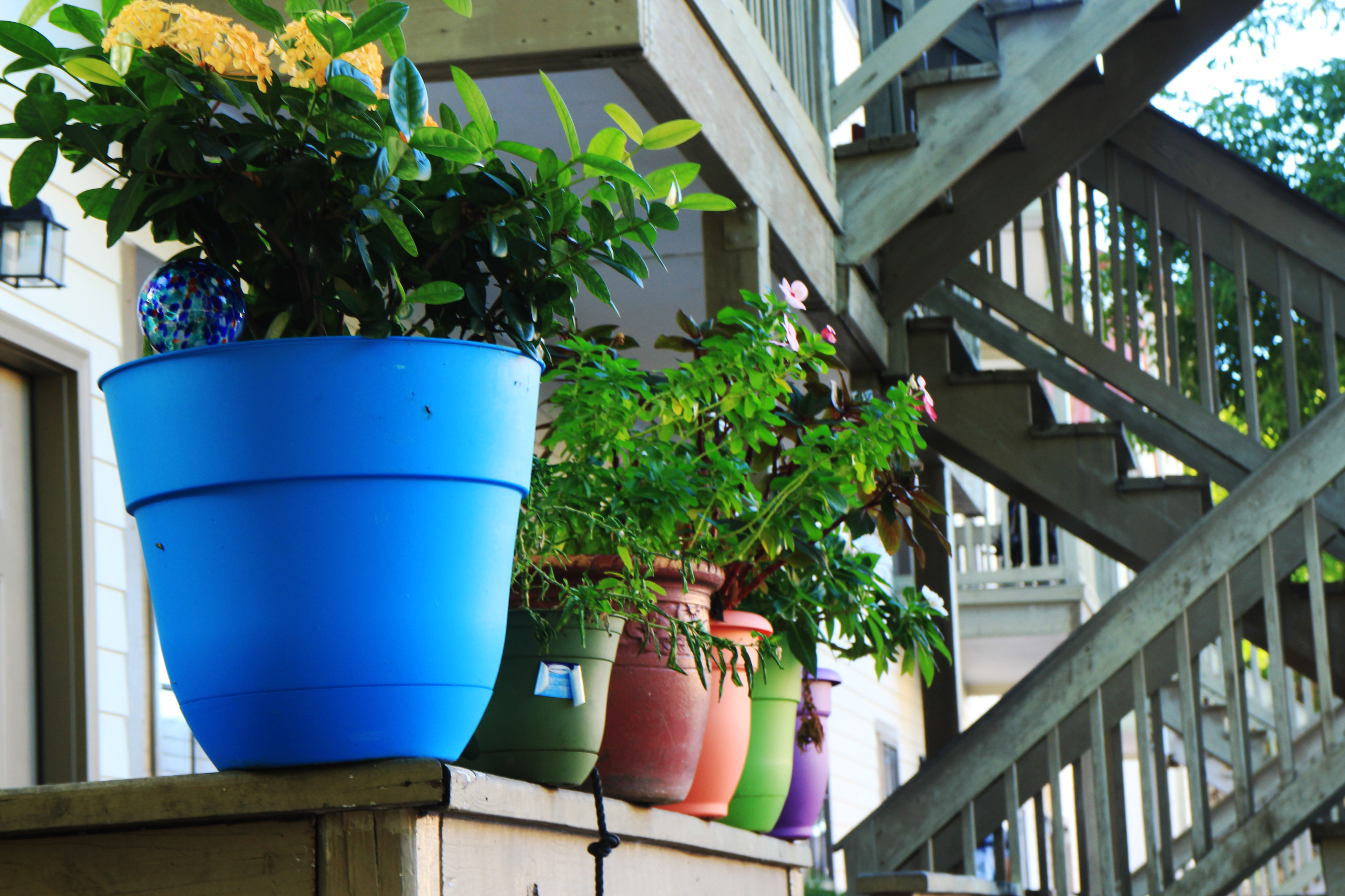 Горшки с цветами на балконе. Ручные настройки. ISO-200, так как снимала в тени в солнечный день. Если бы было больше, боюсь могло бы получиться нечетко. Выдержка-1/20, F-9 для большей резкости изображения. Думаю, горизонтальный ряд с горшками достаточно гармонично пересекается с перпендикулярными геометрическими узорами лестницы справа.