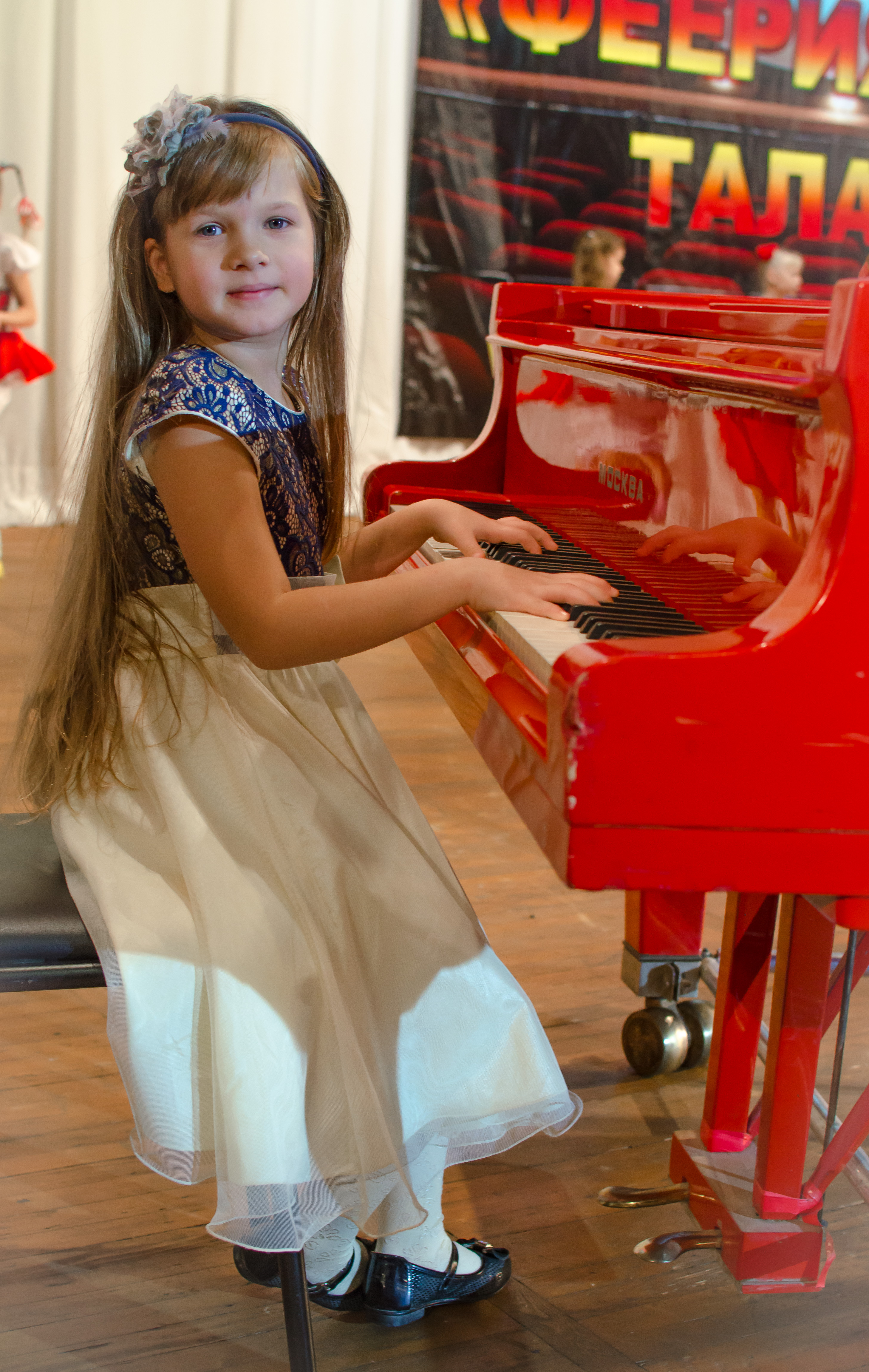 А также, уменьшится глубина резкости. Это также пойдет снимку на пользу, т.к. на фоне отвлекающие фигуры людей и яркий баннер. Если эти детали сильнее размыть, усилится акцент на главной героине.