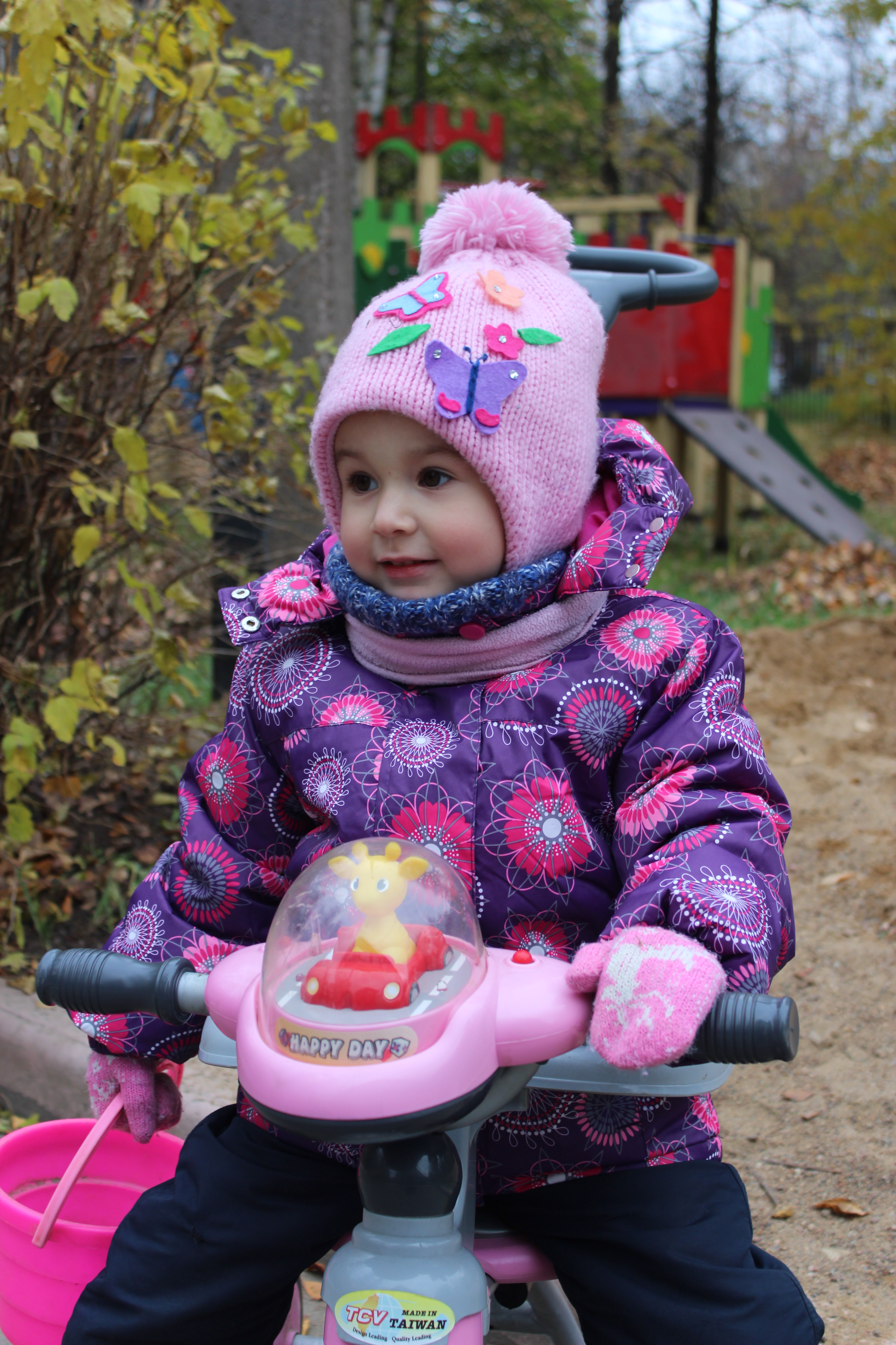 Снят портрет моей старшей дочери на субботнике в детском саду. Я попросила ее попозировать, т.к. совсем недавно мне подарили долгожданный подарок - зеркальный фотоаппарат. На своем любимом велосипеде Лиза позировала раскрепощенно, я выбрала режим съемки - портрет.