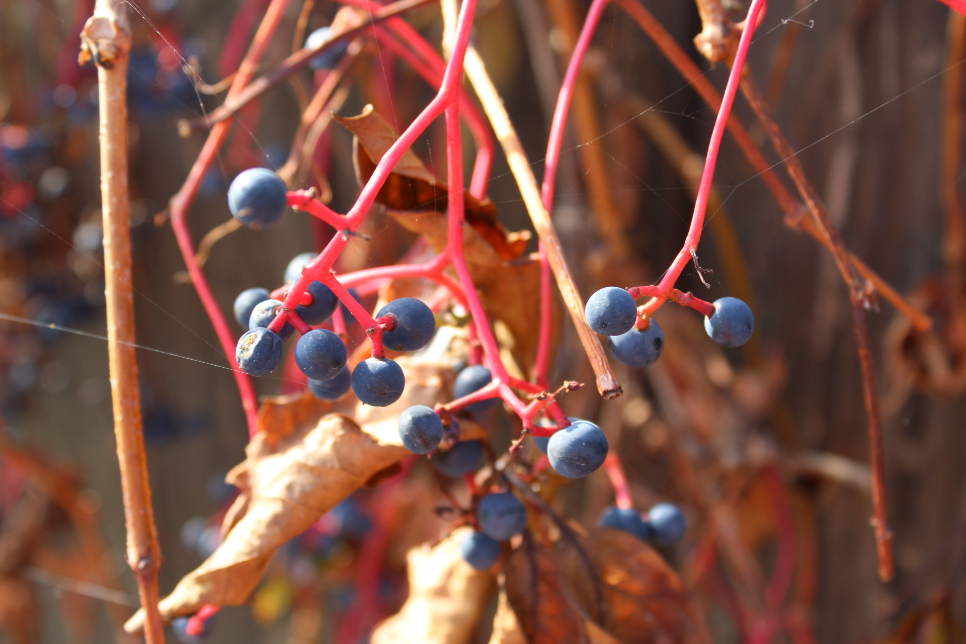 Интересна фактурна снимка с дъх на есен. Има хубава светлина, без остри сенки, с цветов контраст на основните обекти. Приятно боке и успешно фокусиране върху гроздето.