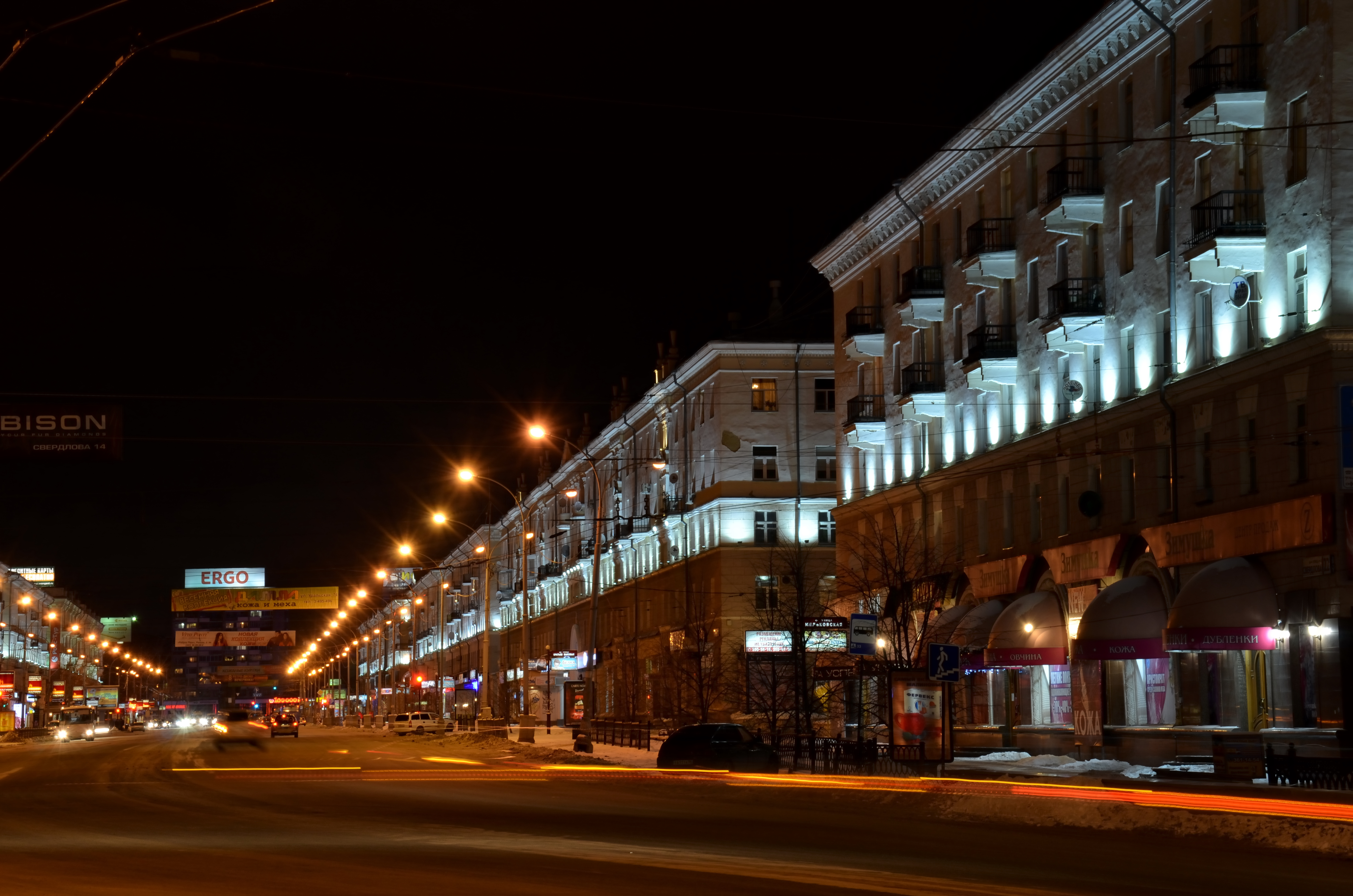 Линии дороги хорошо передают перспективу проводя зрителя от переднего плана к дальнему. Световые смазы от автомобильных фар придают кадру более динамичный вид.