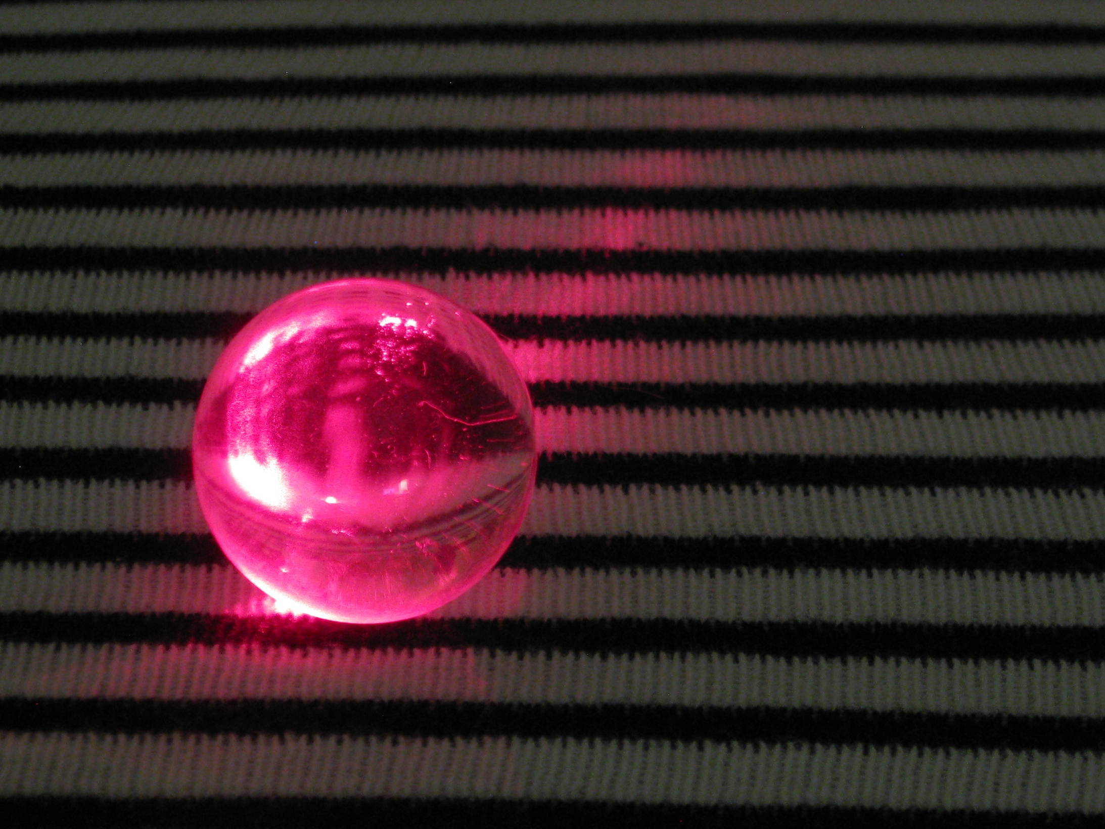 Довольно интересный получился снимок! Гладкая, яркая фактура шара контрастирует на фоне мягкой, приятной на ощупь серой ткани. Диагональ от освещения режет горизонтальные полоски, что добавляет снимку динамики.