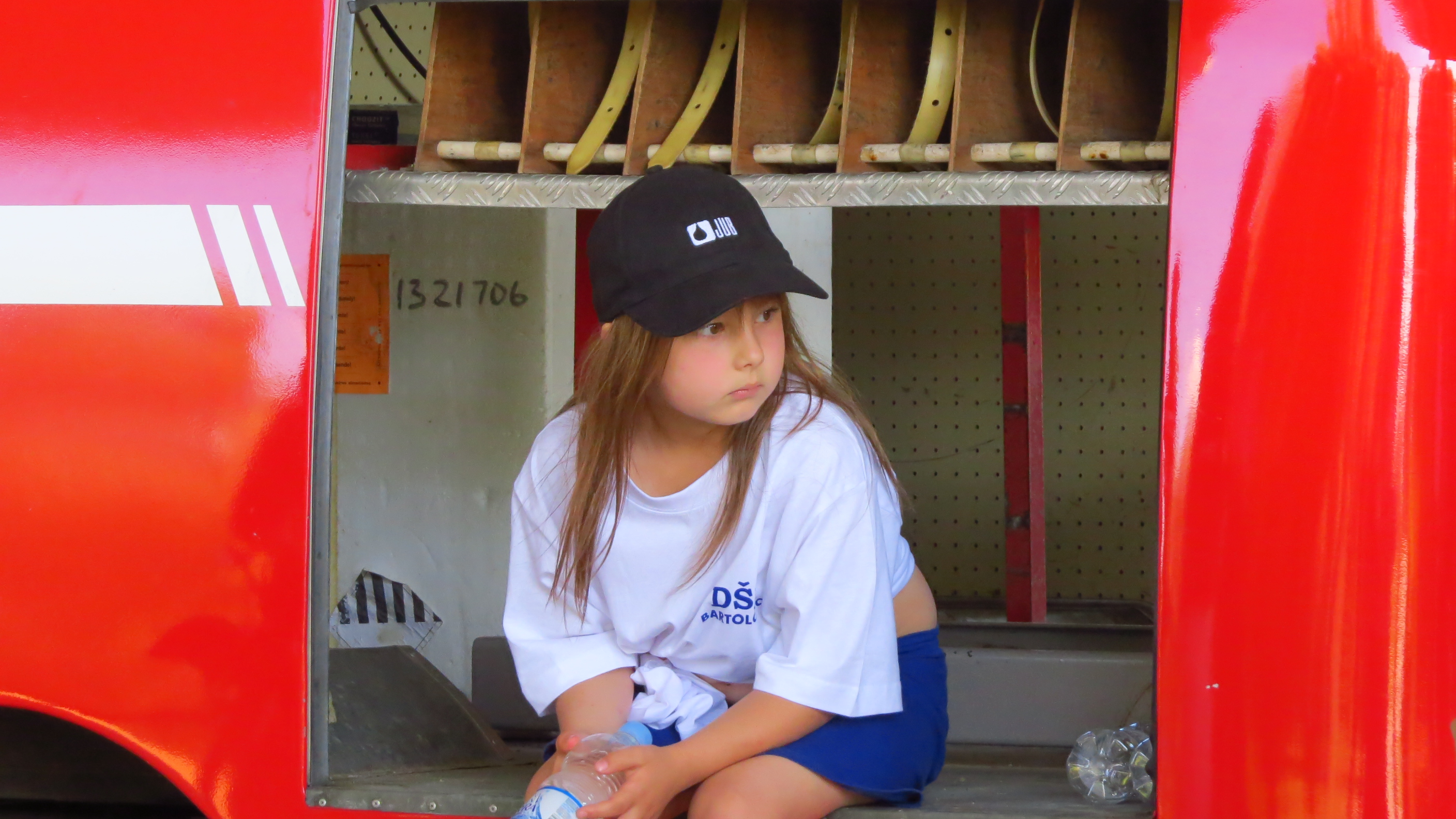 Tužna, zamišljena djevojka dobro se smjestila u "okvir" vrata crvenog automobila. Ova umjetnička tehnika se zove "uokvirivanje".