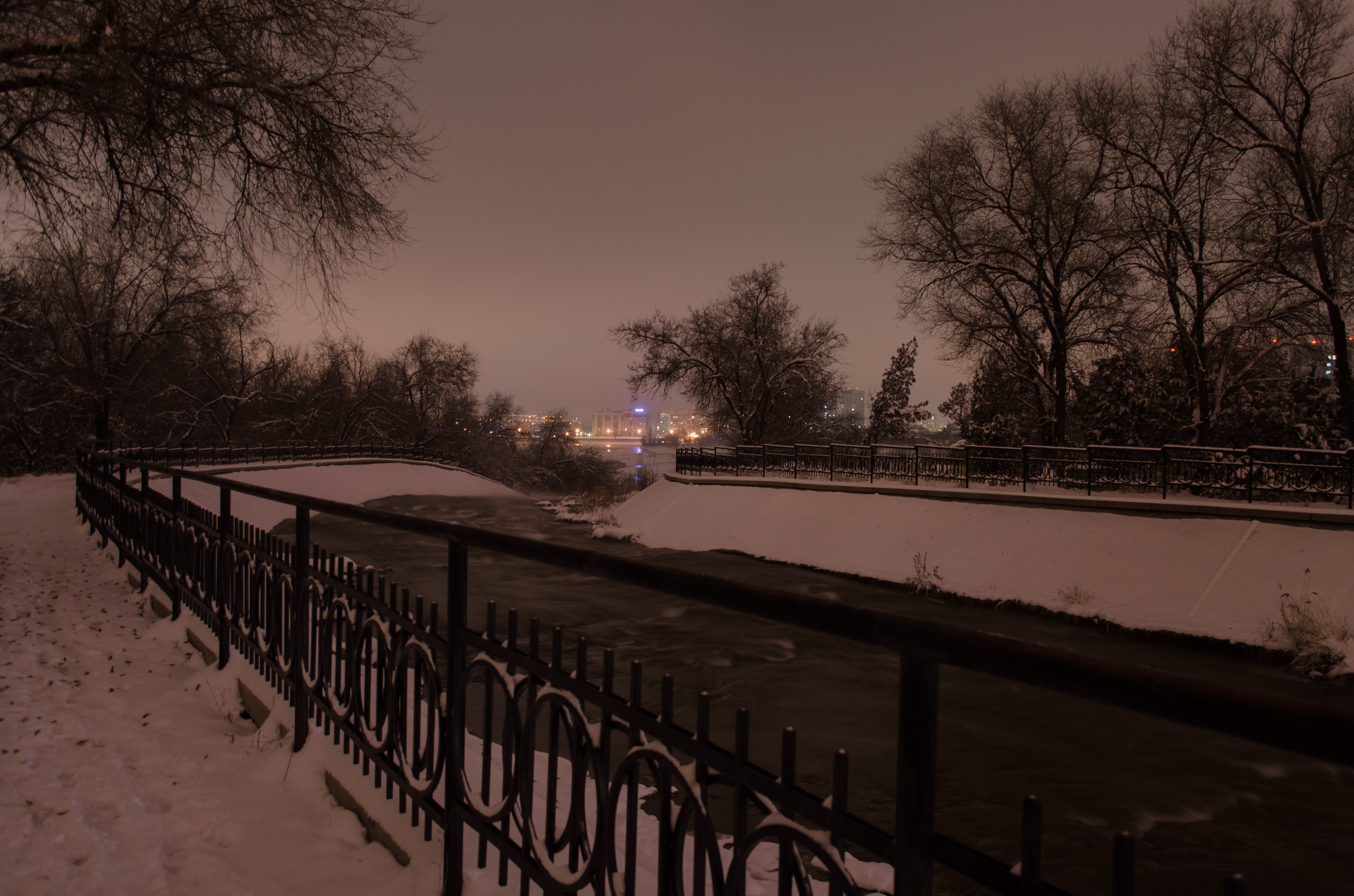 Выдержку надо было увеличить, при 6 сек. диафрагма 3,5. Но было очень холодно, руки уже не шевелились. ))) Небо в тот день порадовало странным сочетанием желто-малинового, поэтому вот такой баланс белого, по-другому не получилось его выровнять.