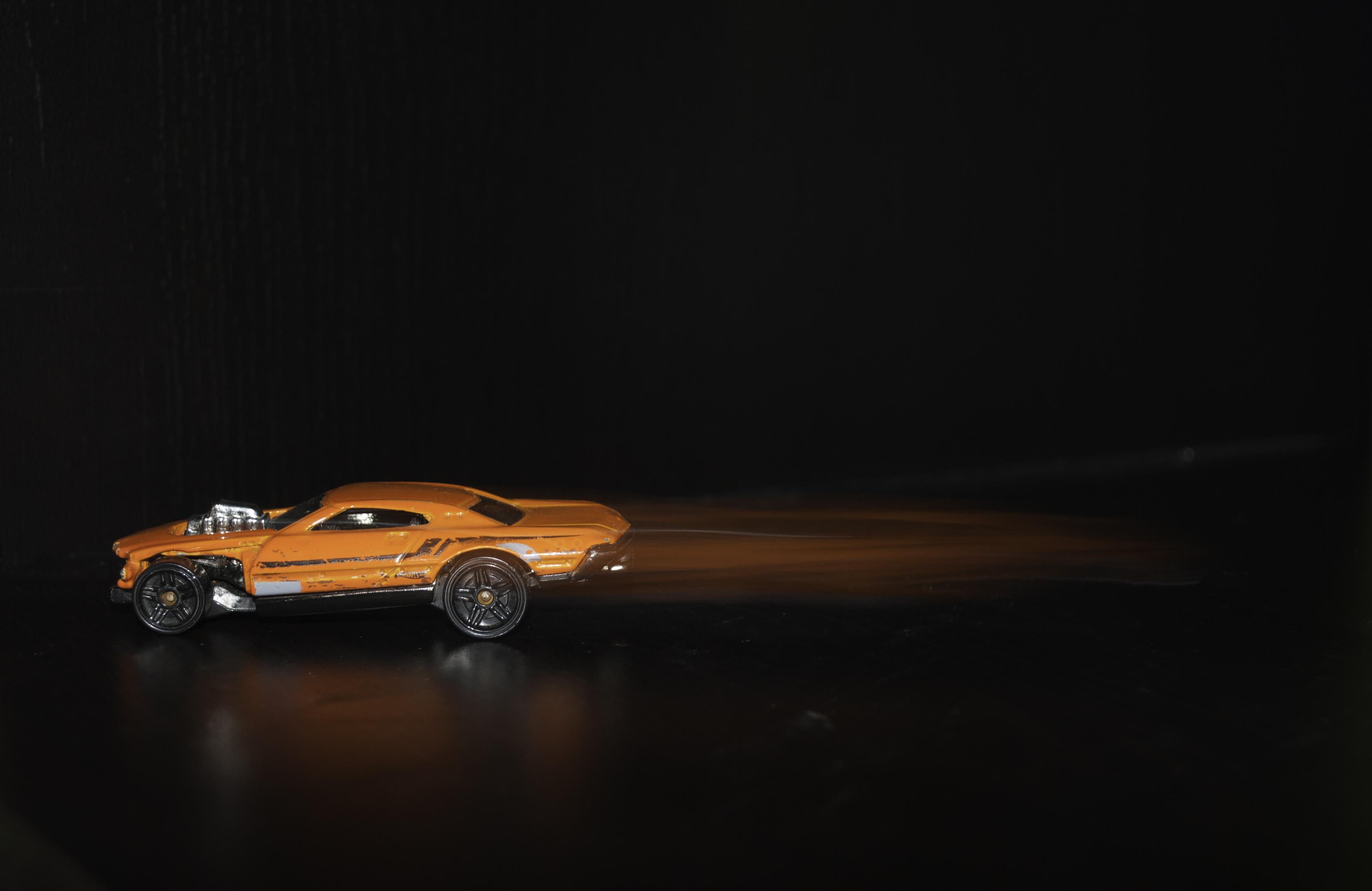 Сама машинка находится в резкости, фокус поймали верно, плюс сочные оранжевые тона на тёмном однородном фоне образуют мощные цветовые акценты, привлекая к машинке внимание зрителя. Подобрали хороший низкий ракурс и точку съёмки.