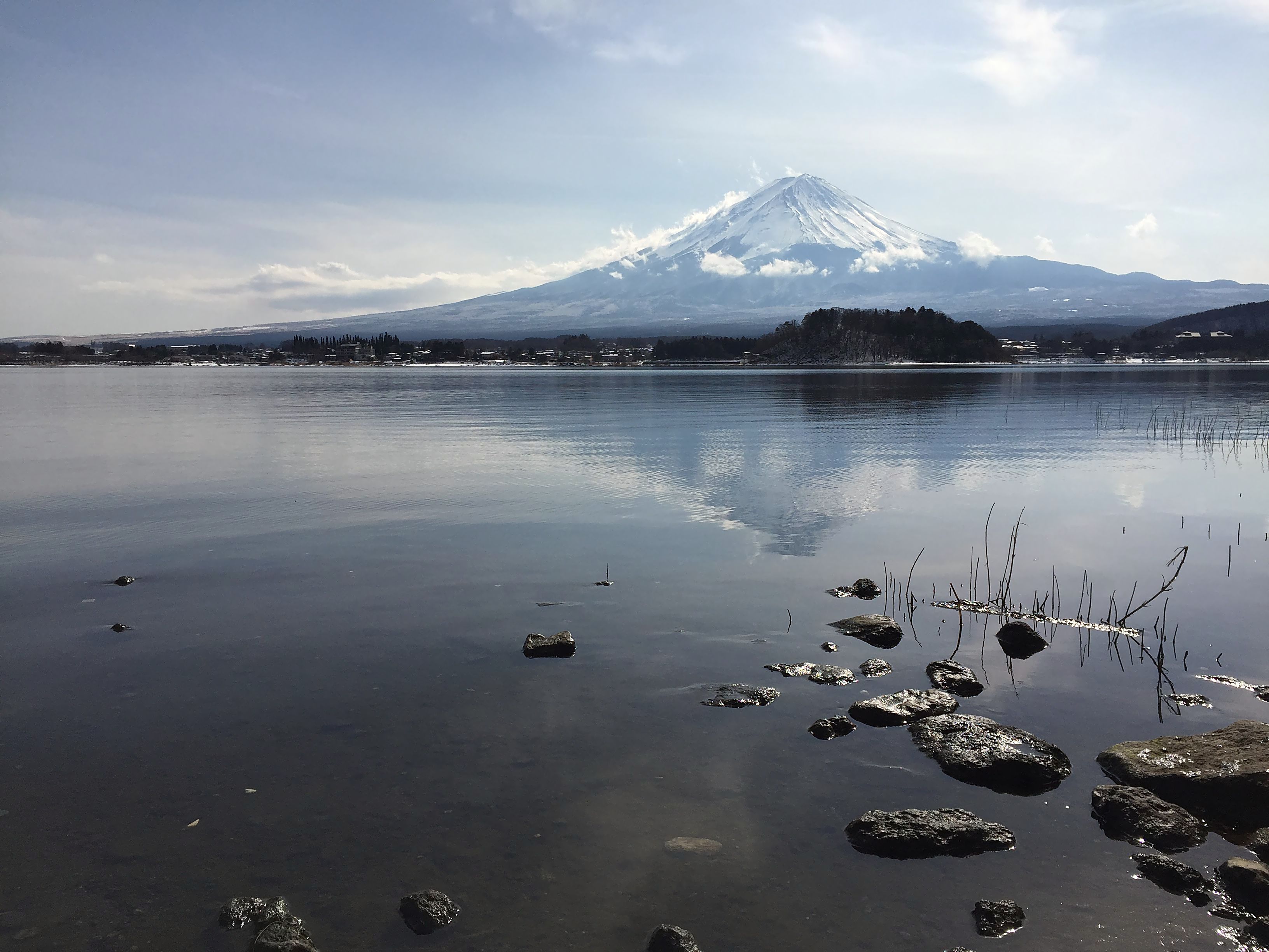 Снято на iPhone - но задача на симметрию, решил прислать. Зимний пейзаж горы Фудзи с отбитием в водах озера Yamanakako.