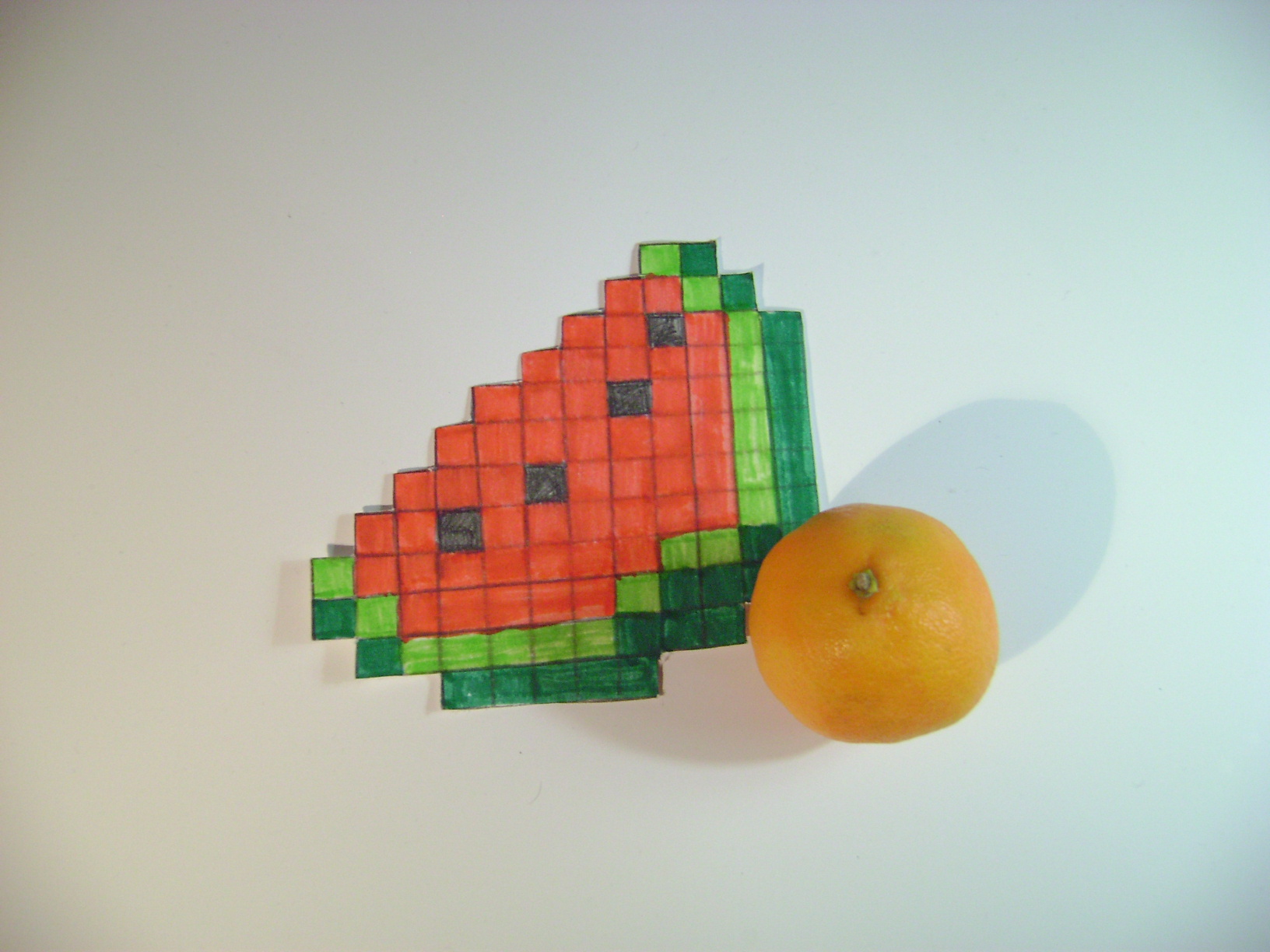 Интересная задумка с реальным фруктом и нарисованным. Выглядит здорово!