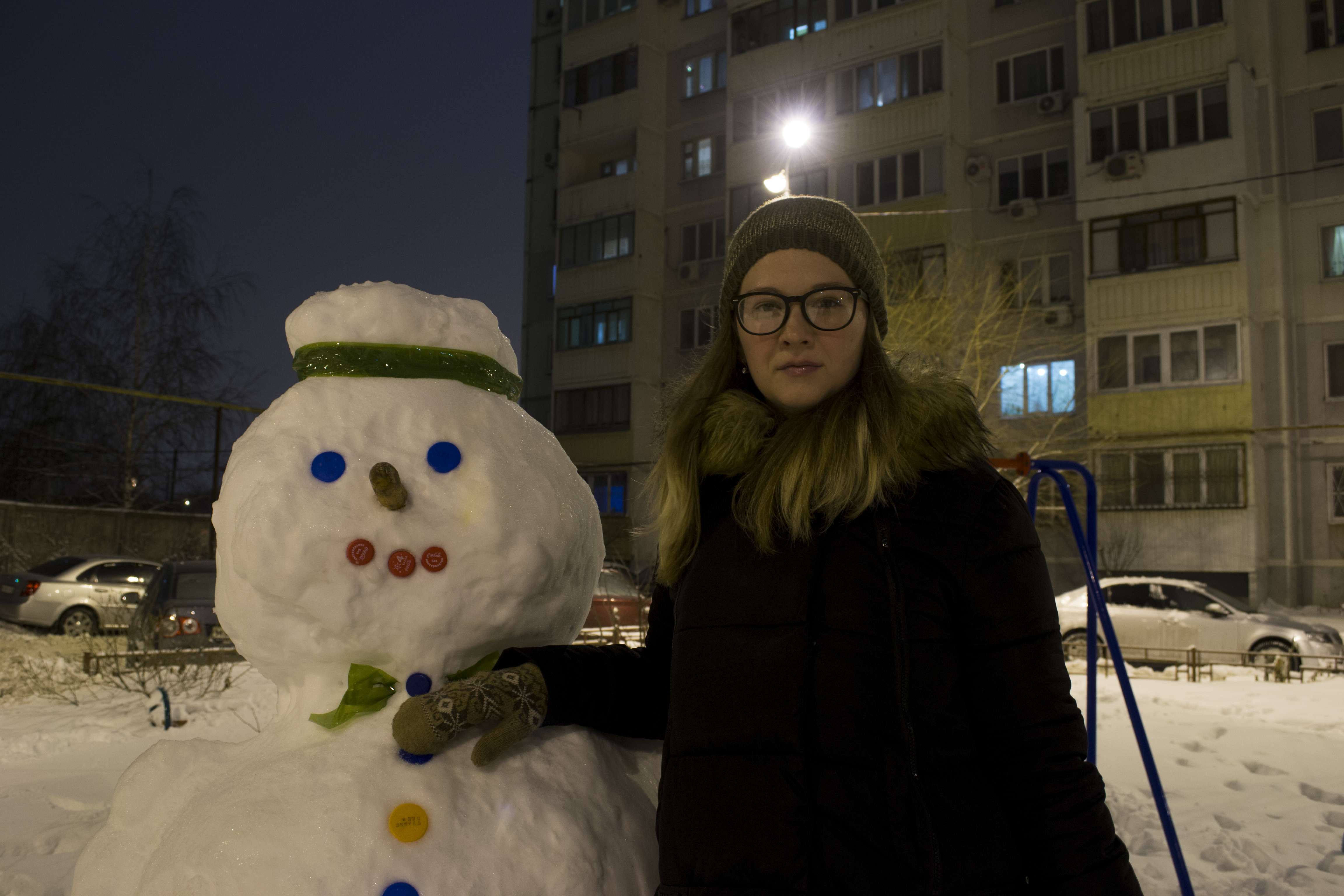 Хотя можно было развернуть ее на фонарь, который сейчас за спиной у нее. Тогда бы она лучше была освещена. И старайтесь настраивать баланс белого под тип света, чтобы не было таких желтых тонов. Просто из-за них поменялся цвет кожи, а в портрете важно, чтобы он был естественным :)