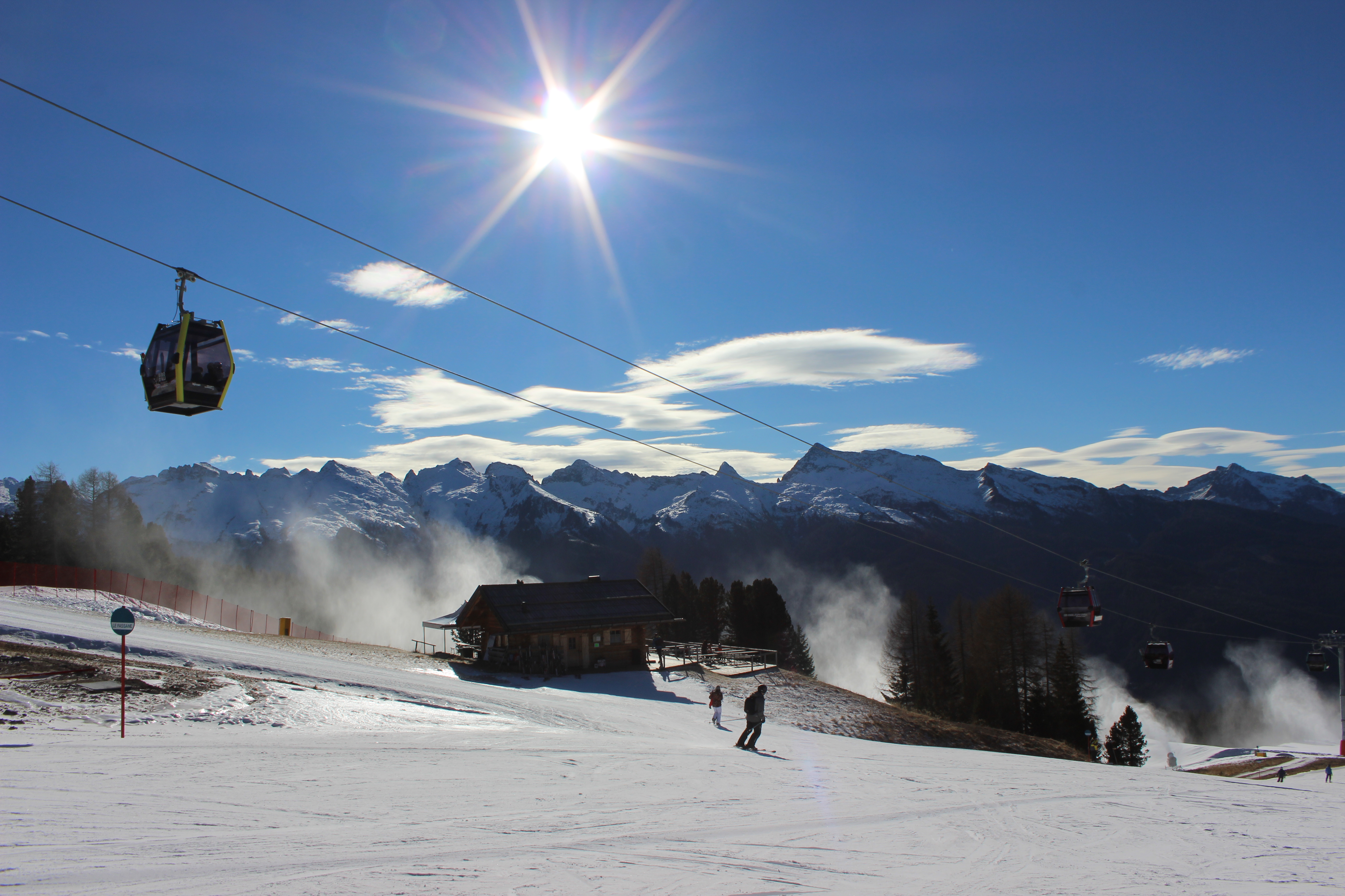 Композиция многоплановая, глубокая. Очень хорошо, что взяли в кадр больше неба - снимок получился лёгким, воздушным. Движущаяся гондола и фигурки лыжников добавляют динамики снимку. Неплохо!