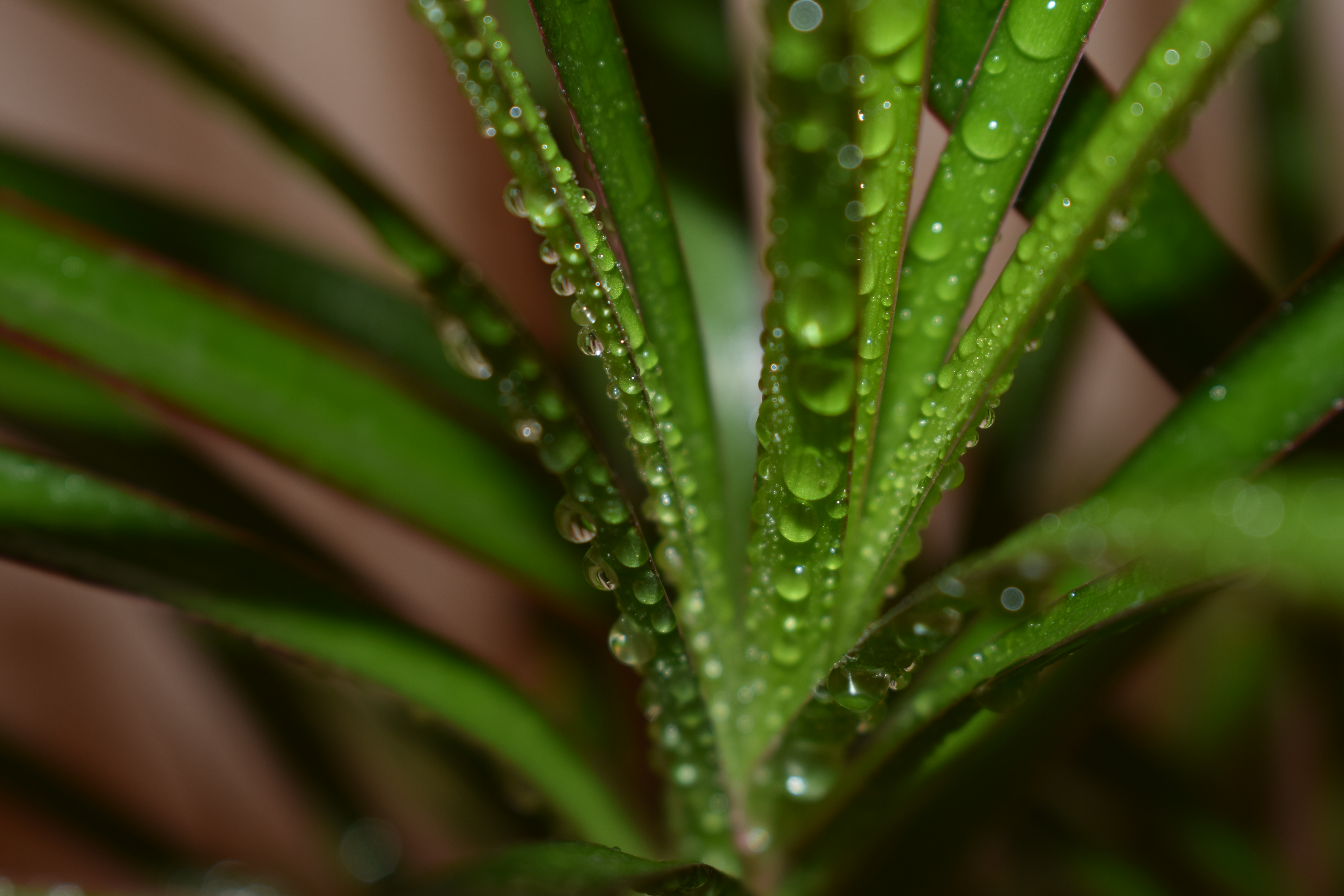 В данном случае правильно увеличили фокусное расстояние объектива, что позволило смягчить детали фона и максимальный акцент сделать на главном: на листьях с каплями.