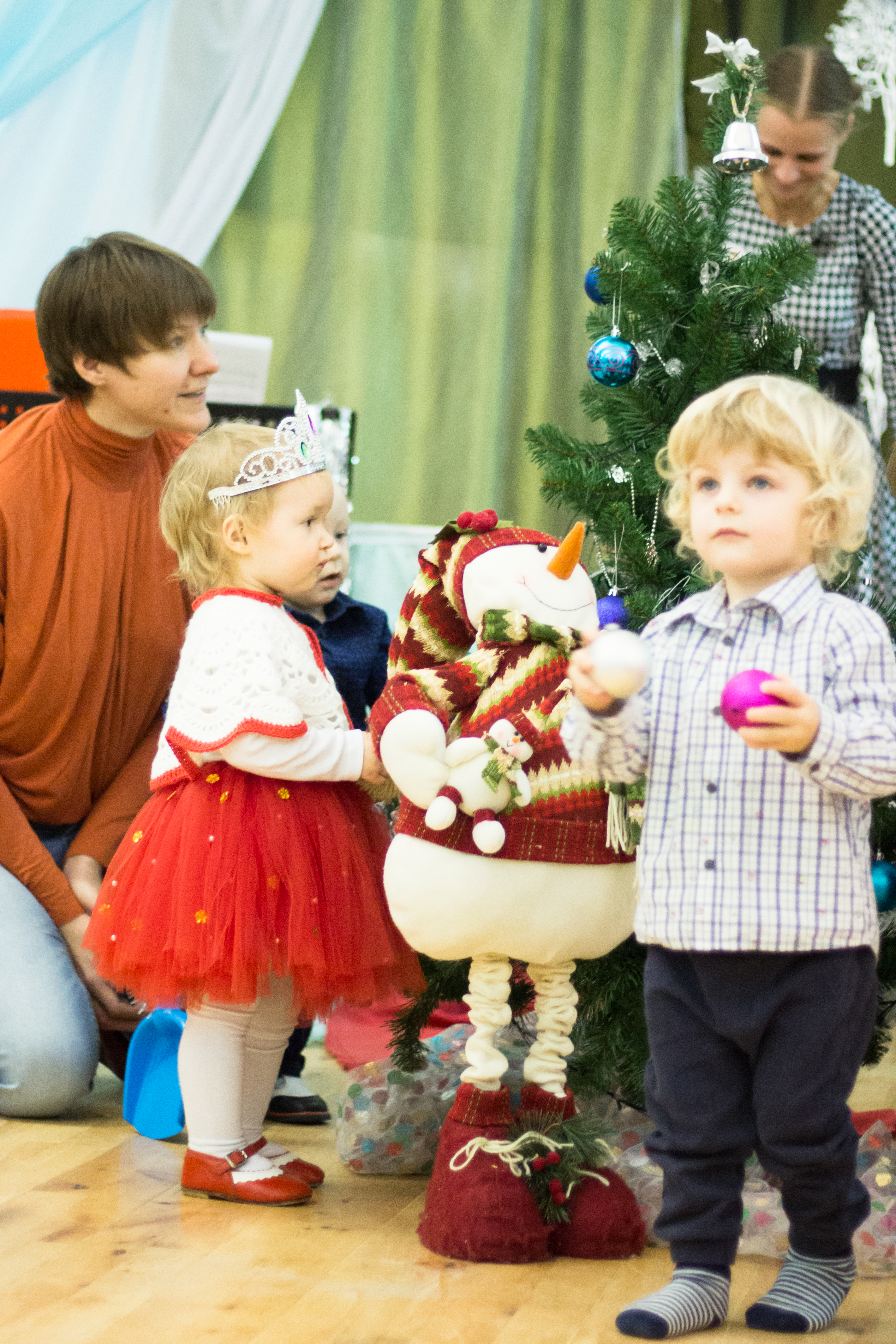 Снимать деток очень тяжело, ведь они такие непоседы, поэтому не стоит бояться большого процента смазанных кадров. Верным решением было снять сюжет без вспышки, что позволило сохранить объём и добиться более естественной цветопередачи. Повышение исо до 1600 единиц вполне оправдано, ведь это позволило добиться выдержки 1/200 и избежать смаза. Удачно выбрана и вертикальная ориентация кадра. Если главной героиней является девочка, то с фокусом сейчас всё нормально, не промахнулись)