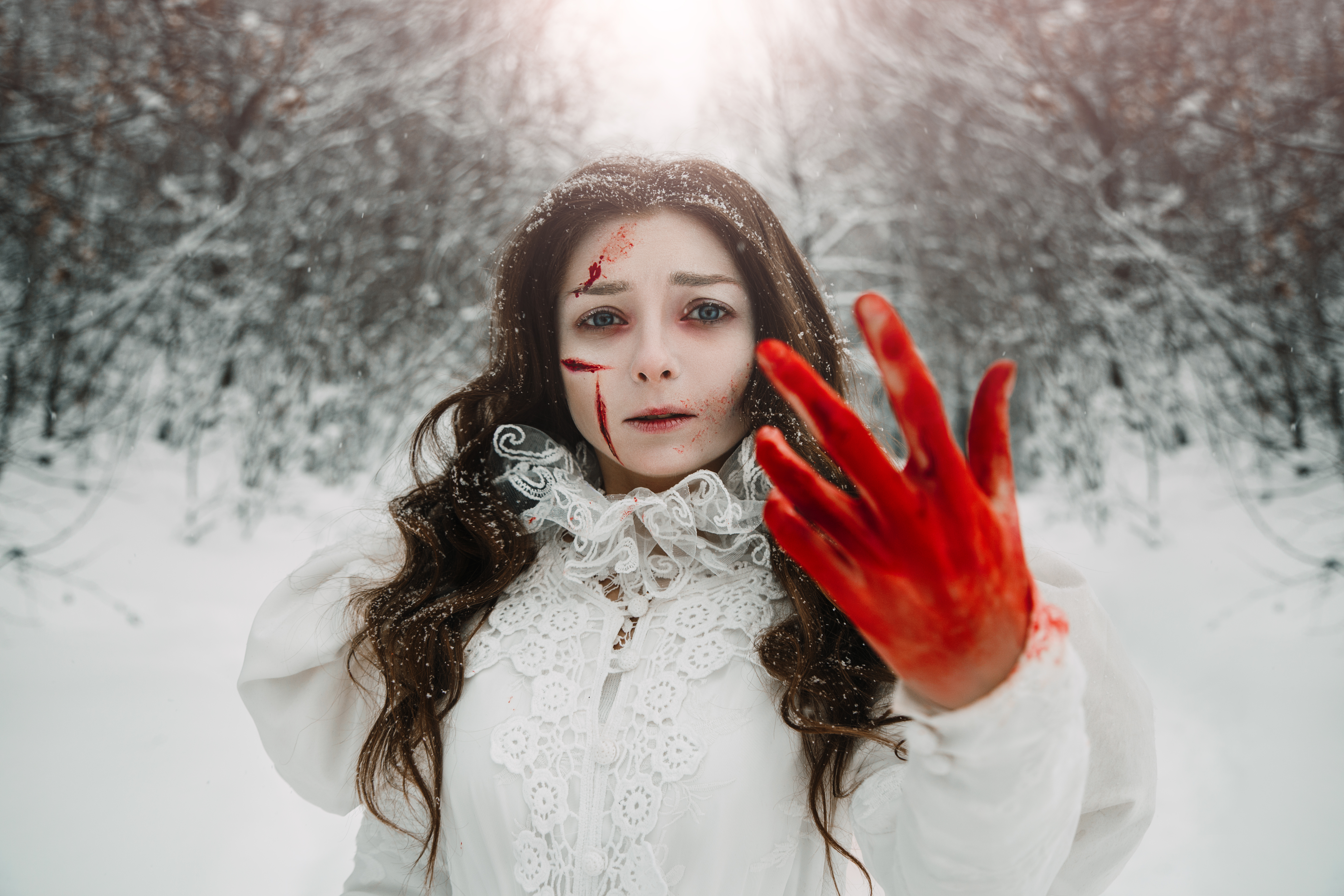 Камера сфокусирована на глаза модели , выделено ее настроение.